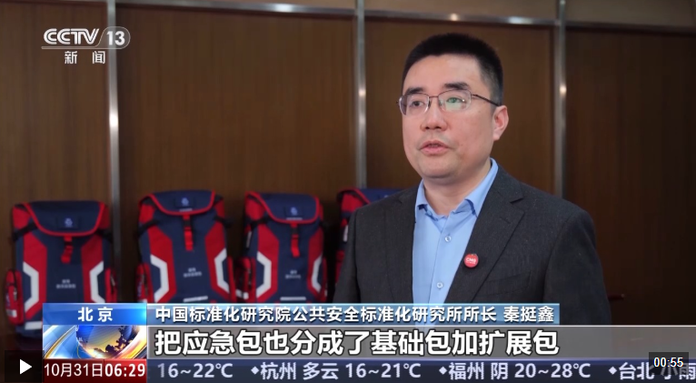 中国标准化研究院公共安全标准化研究所所长 秦挺鑫:老版的国标不能适应现在的一些需求。新的国标针对火灾、洪涝、地震这三种典型的场景,平时遇到的比较多的场景,提出了新的一些用品需求。把应急包也分成了基础包加扩展包。