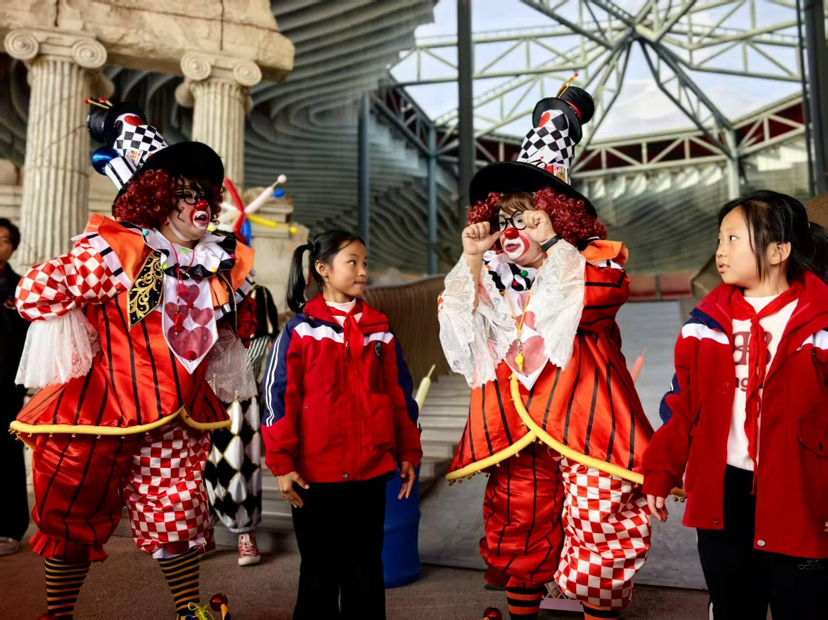 9时40分,“三秦学生记者”们抵达丝路欢乐世界。一场以“科技携手丝路·共创时代新篇”为主题的迎宾秀拉开活动序幕。异域风情的舞蹈、奇幻的魔术表演,瞬间点燃了同学们的探索热情。