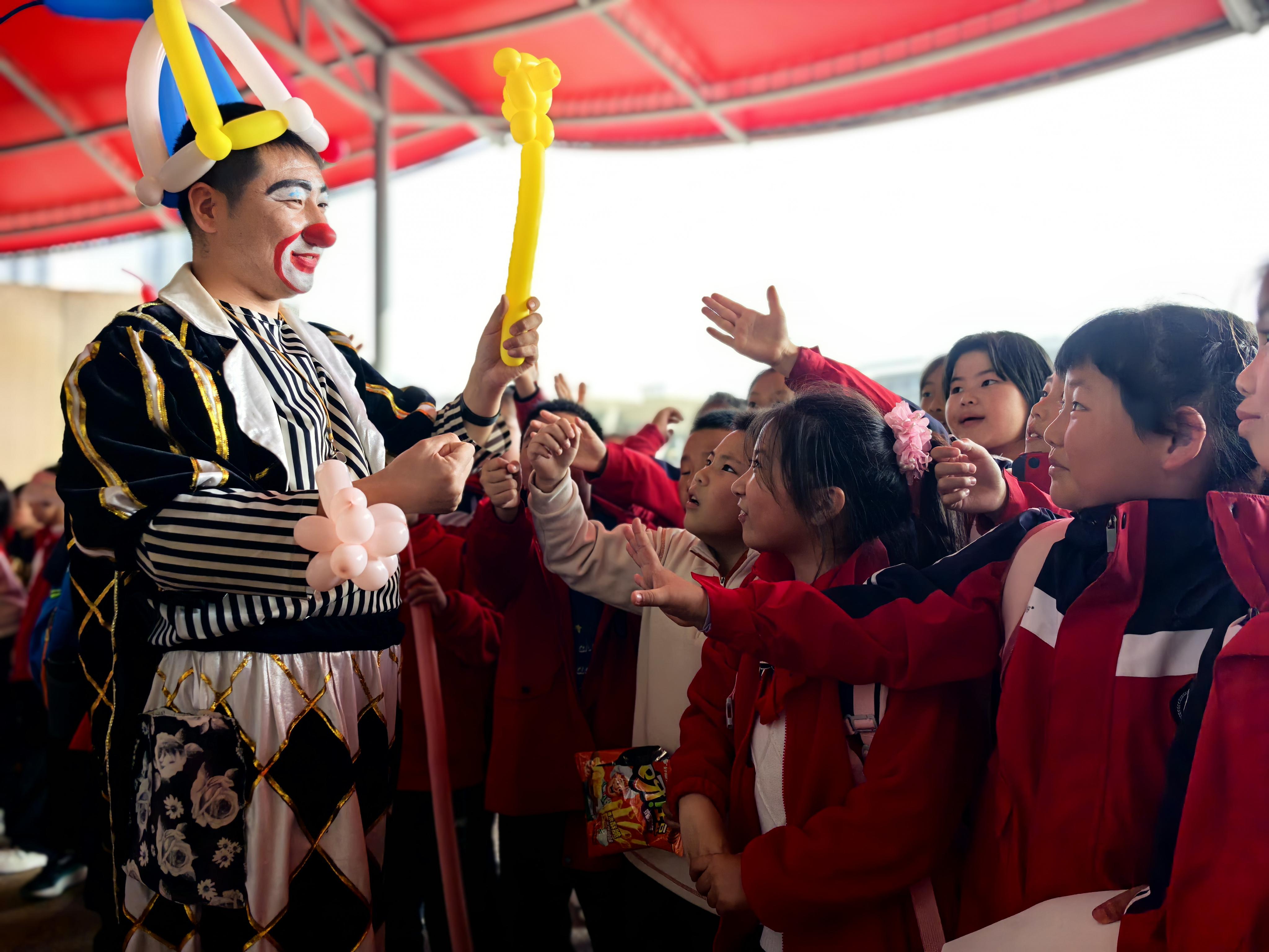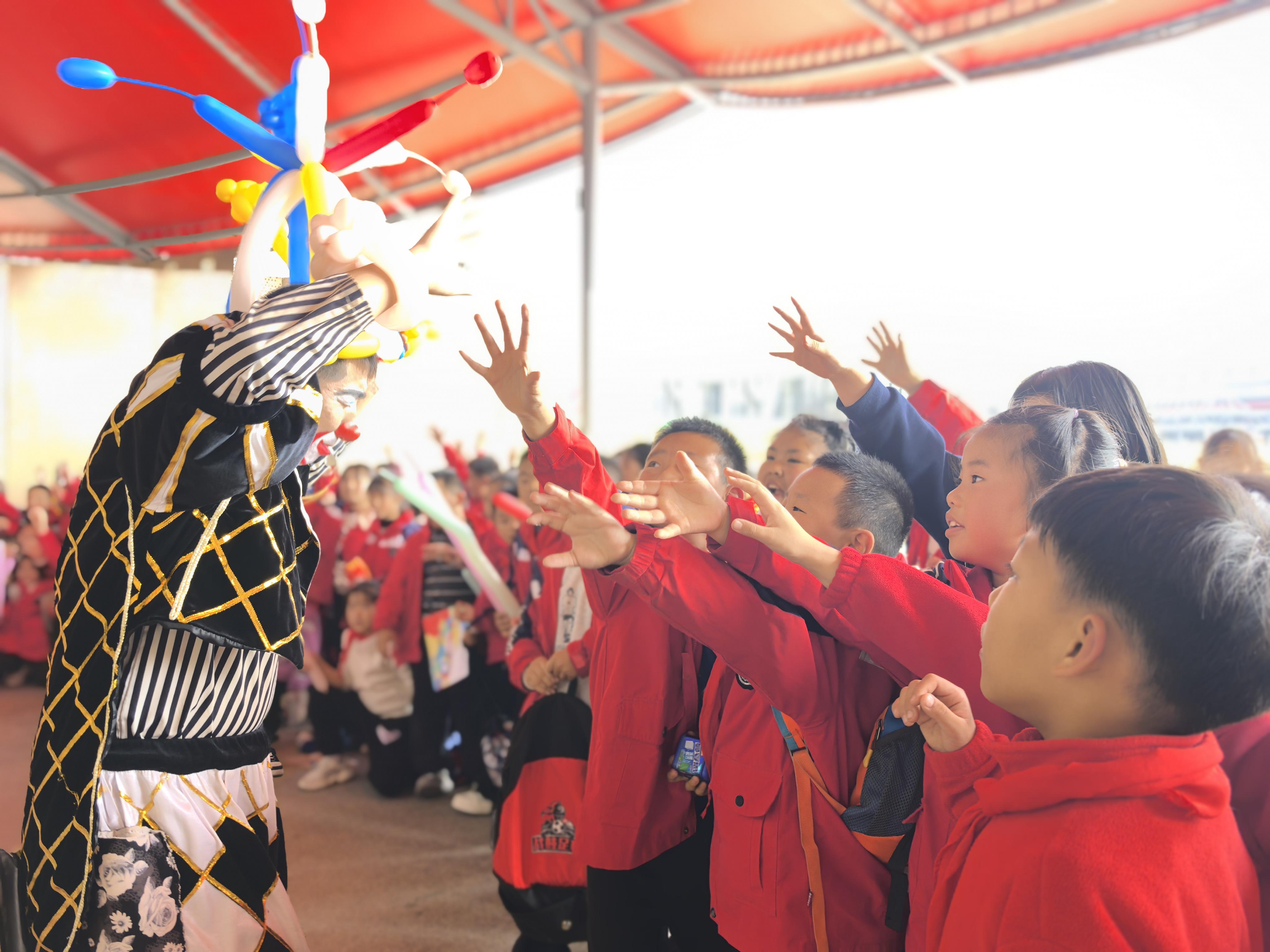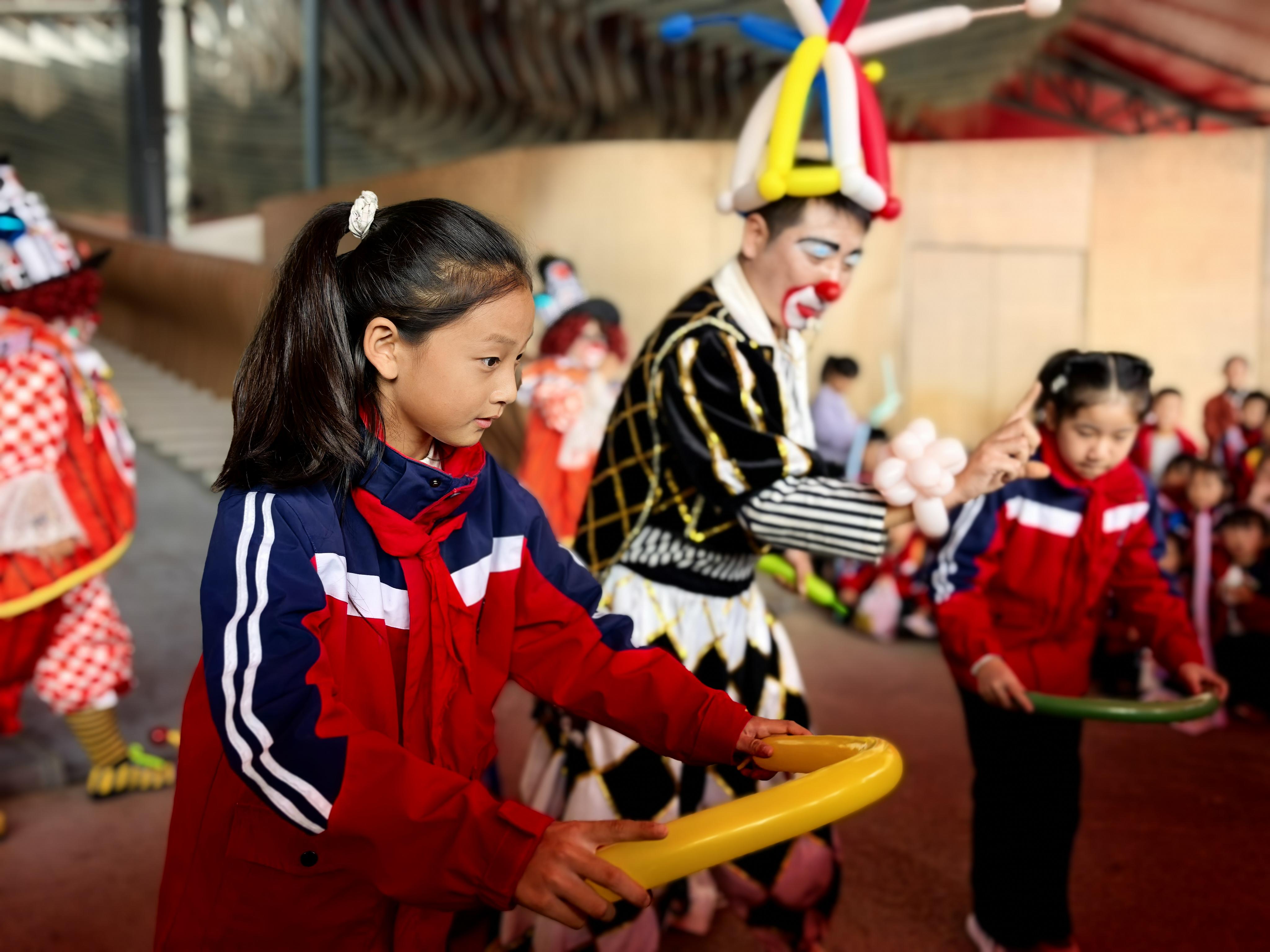 本次活动最欢乐的部分是小丑表演。演员们诙谐幽默、生动形象的表演逗得全场欢笑声掌声不断。五彩的气球被扭成花束、玩偶,随机赠予台下的同学,孩子们在欢乐的氛围中放松身心,释放天真,感受童年美好。