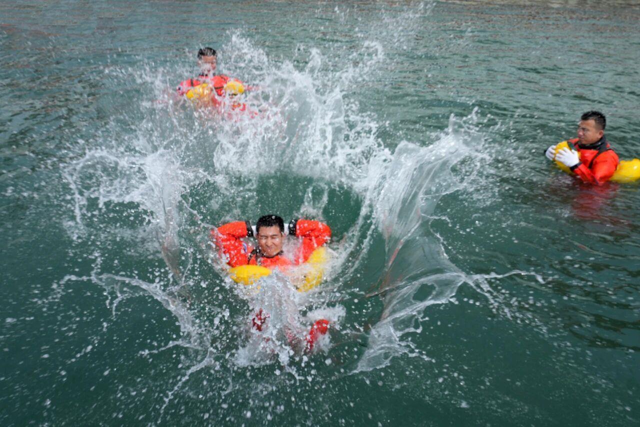 △航天员张陆水下出舱活动训练前进入水下训练服
