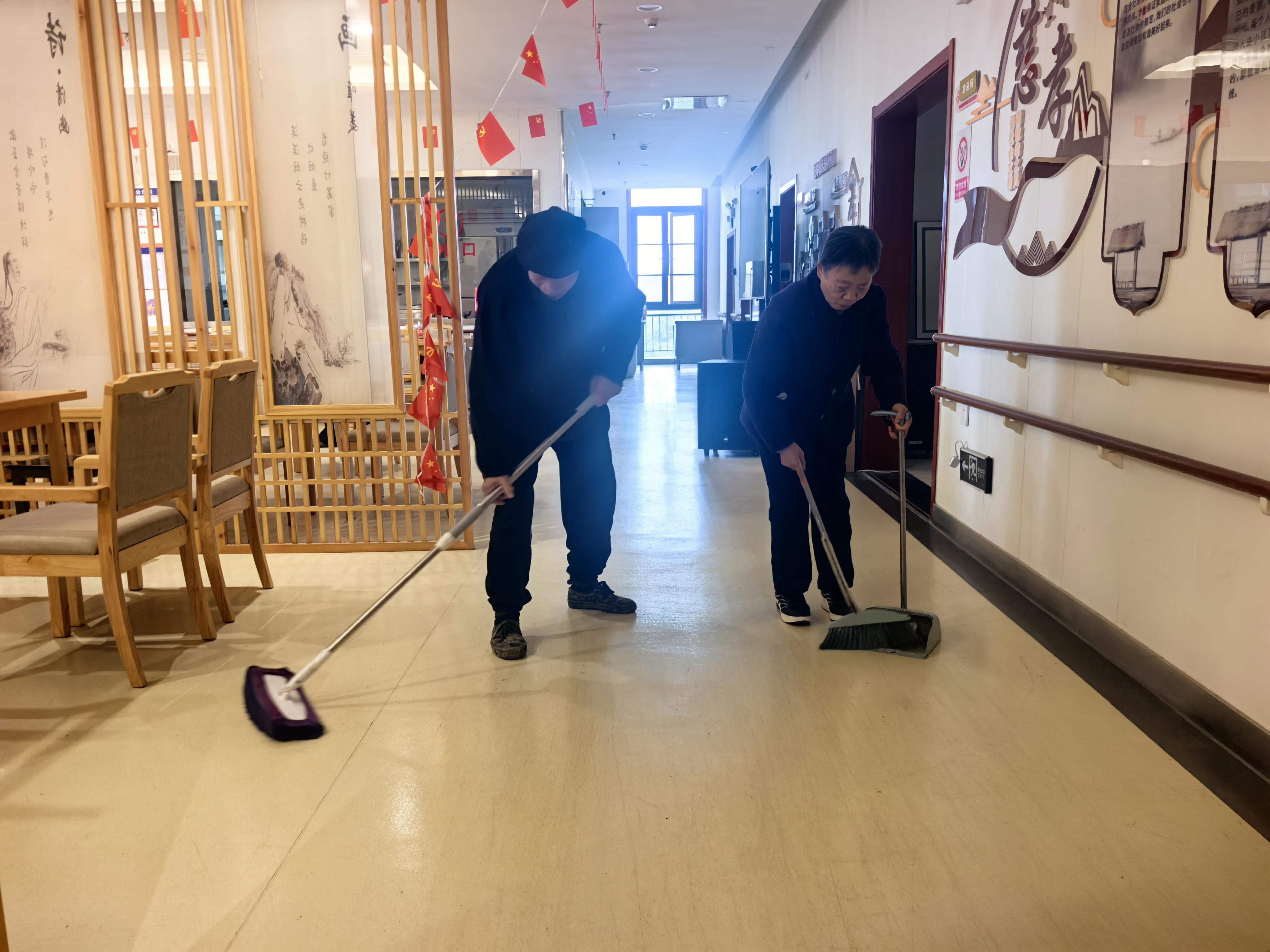 饭后,76岁的朱女士拿起扫帚清扫地面。“我在这里免费吃饭,顺手打扫下卫生,应该的。”她笑道。