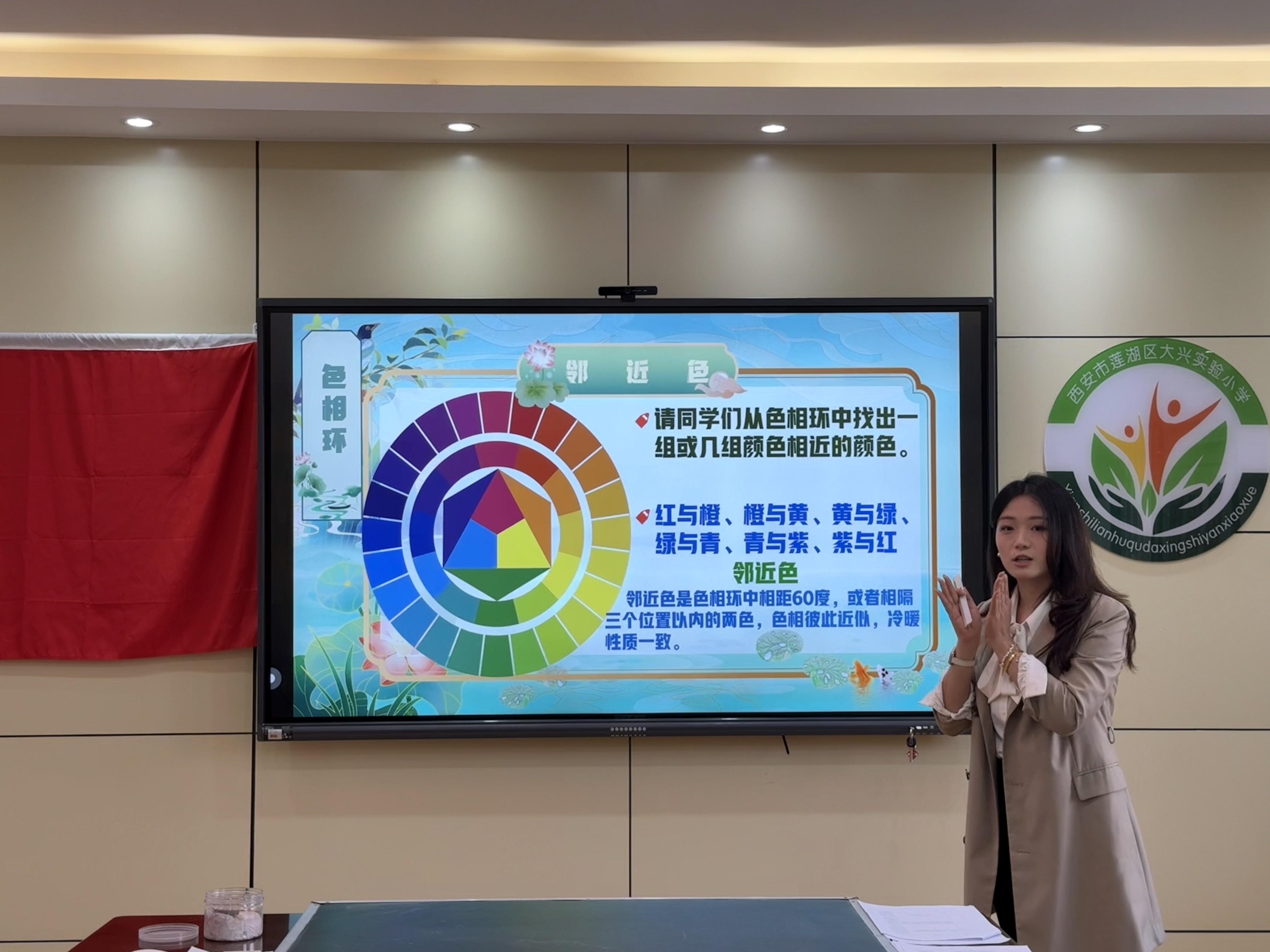 美术教师董琰瑞在《画一幅和谐的画-寻色二十四节气》中,以二十四节气为载体,融合邻近色知识与传统文化。通过情境导入与“节气找家”游戏激发学生探究欲,借助色彩线索卡、小组讨论等方式讲解邻近色概念,并在“色彩里找精灵”游戏中巩固知识。分层设计创作任务,满足不同学生需求,通过作品分享与多元评价提升学生的色彩表现力与文化感知力。