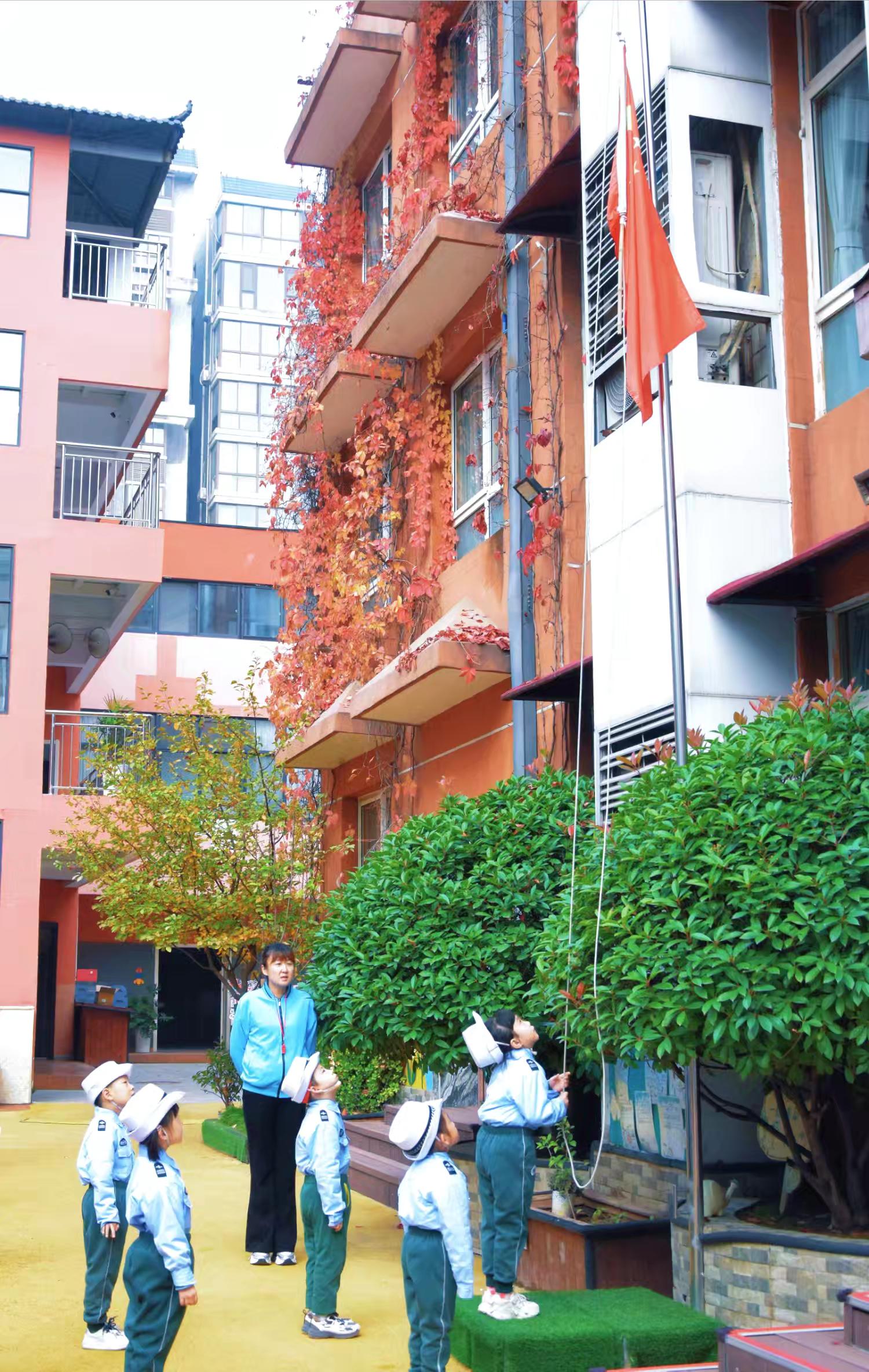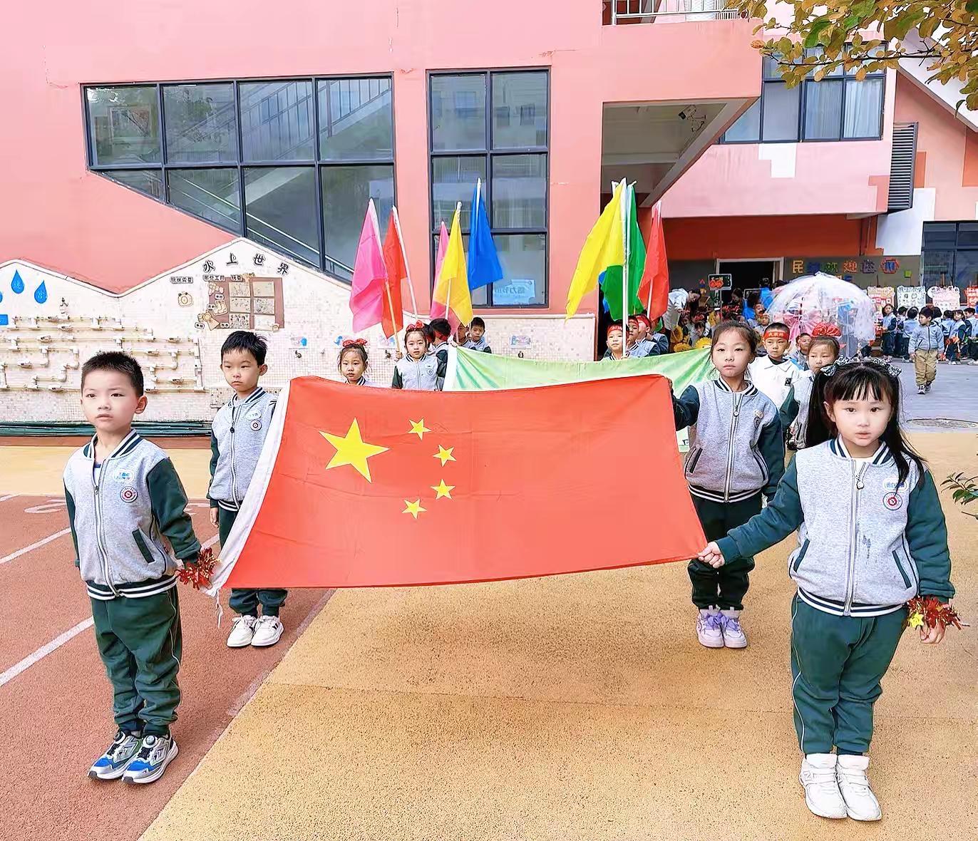 各班方阵各具特色:大班步伐坚定,展现“进取”“阳光”“坚韧”;中班活力四射,洋溢“自信”“热情”“朝气”;小班萌娃稚嫩可爱,传递“童真”“欢乐”“团结”。在全体师生肃立注目下,五星红旗伴随国歌冉冉升起。