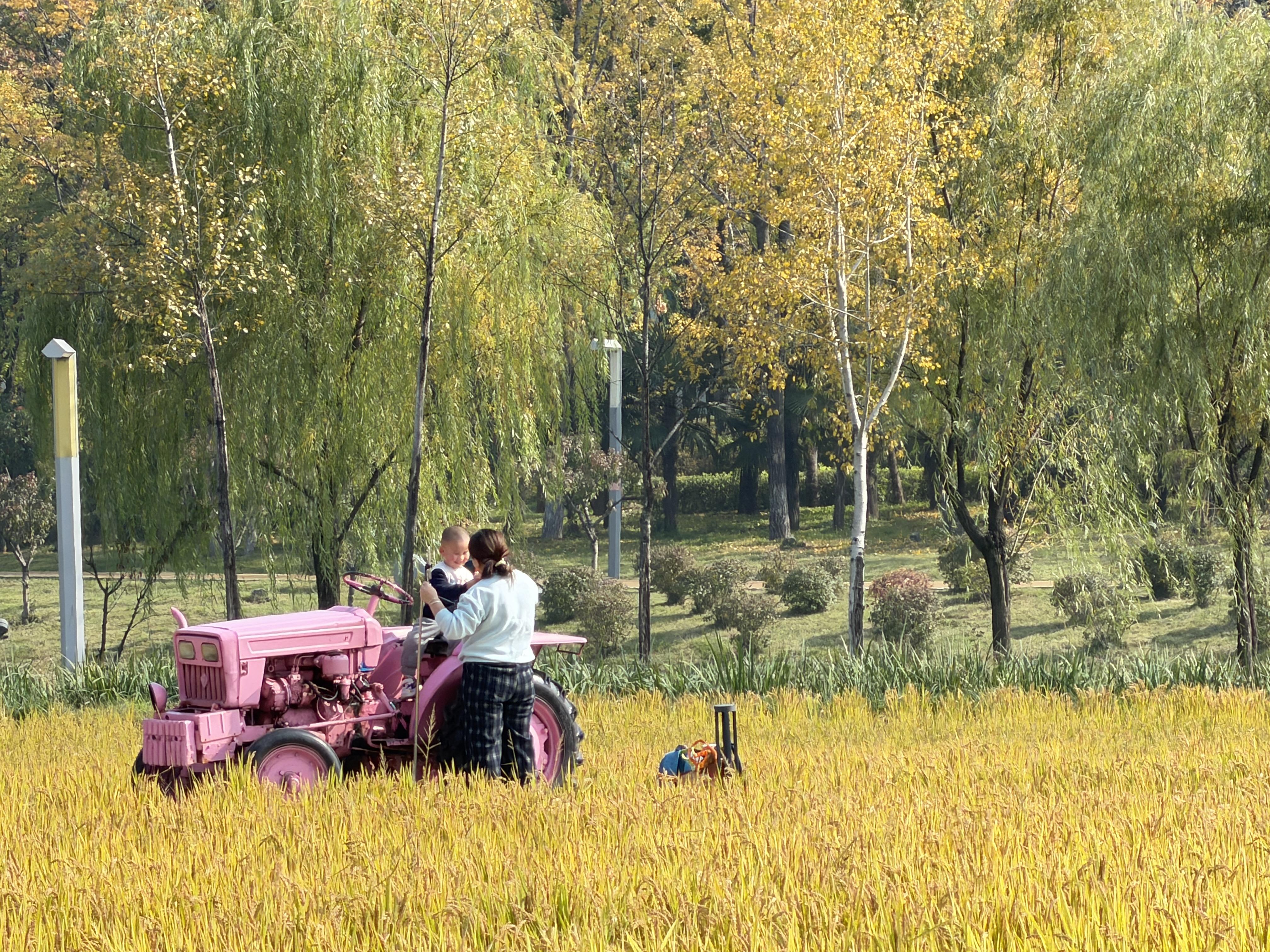 夕阳西下,小火车的鸣笛声渐远,稻田里的稻草人静静伫立。晚风拂过,稻穗的清香飘向远处的居民楼。在长安公园,农业不再是乡村专属,公园也超越了休闲的定义。这片金色稻田证明,城市与田园并非对立,当农耕文明嵌入现代公园,便能生长出兼具生态价值与人文温度的都市风景,让人们在钢筋水泥间,始终能触摸到土地的脉动。