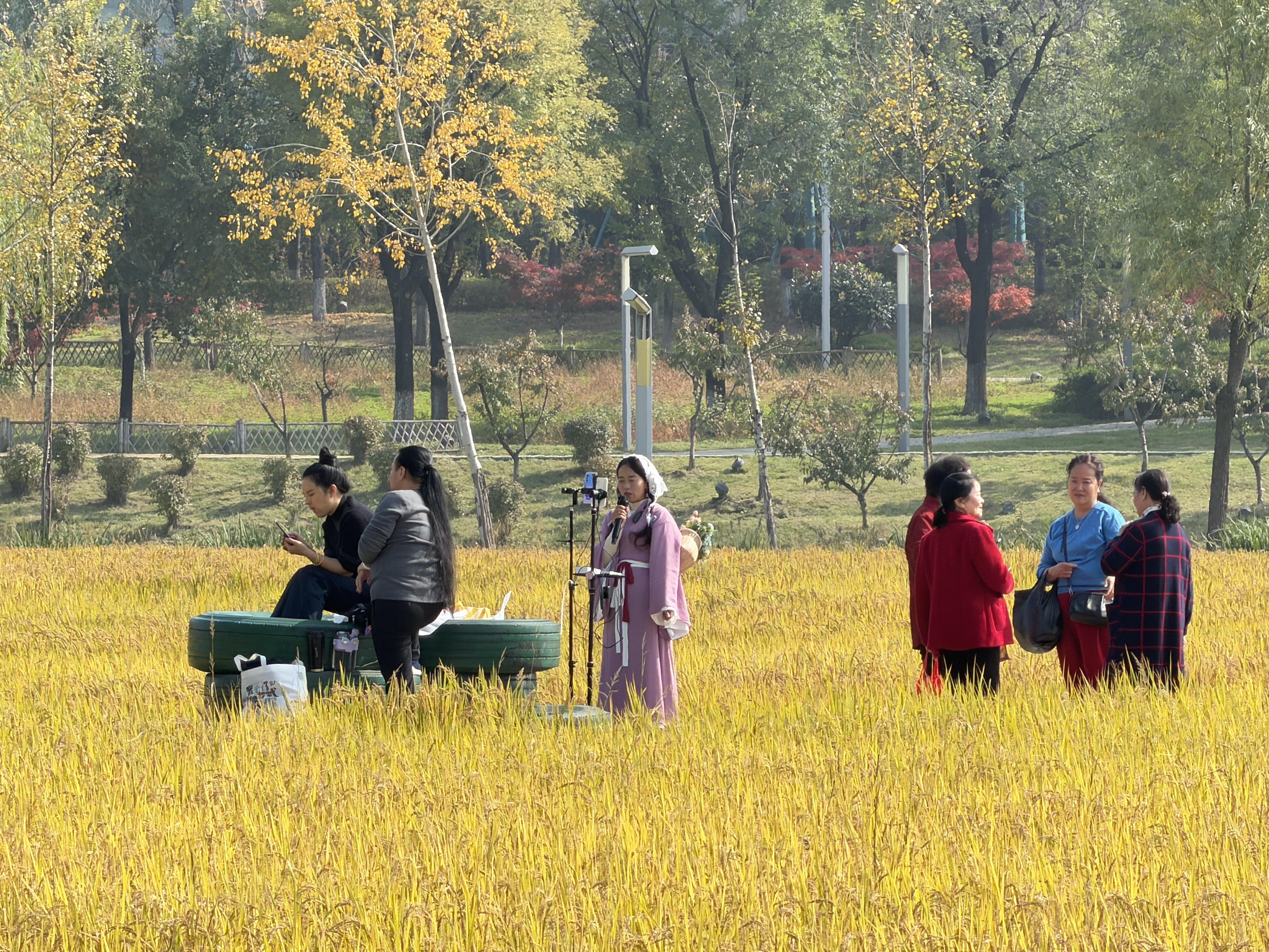 三秦都市报-三秦网讯(记者 赵丽莉 见习记者 宋可青 张桢璐)深秋时节,西安长安公园西门内一片热闹景象。70 余亩 “桂花球” 水稻铺展成金色海洋,这片嵌入城市公园的稻田,以 “公园 + 农业” 创新模式,让农耕文明在都市空间焕发新生,成为市民休闲、学习的好去处。