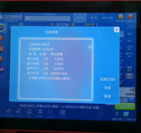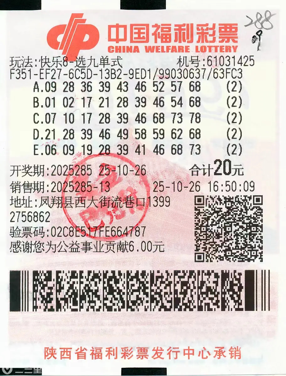 三秦都市报-三秦网讯(记者 任荣)金秋时节,硕果盈枝,宝鸡彩市再传好消息。在福彩快乐8游戏第2025285期开奖中,位于宝鸡市凤翔区西大街流巷口的福彩61031425号投注站喜中“选九中九”2注,资深彩民马先生凭借一张定胆机选票,一举斩获总奖金60万元。