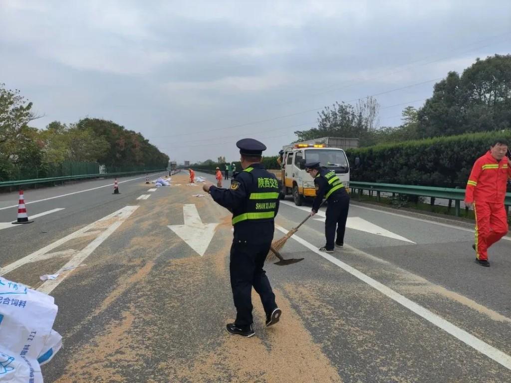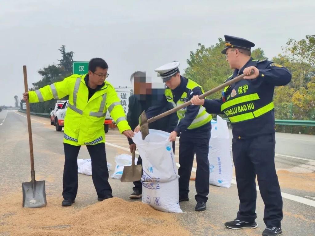 当天上午9时许,熊师傅驾驶着一辆满载稻谷的货车行驶在汉宁高速上。当车辆行驶至K1352+950四川方向路段时,装载稻谷的袋子突然意外崩裂,大量金黄的稻谷如潮水般倾泻而出,洒落在高速路面上,占据了部分车道。过往车辆纷纷紧急避让,交通秩序瞬间陷入混乱,车辆通行严重受阻,现场险象环生。
