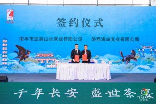活动现场,南平市武夷山水茶业有限公司与陕西海峡实业有限公司签订合作协议,将在政和白茶西北市场推广、茶旅资源对接等方面深度合作。随后,海峡两岸茶业交流协会副会长王剑华、南平市海峡茶业交流协会会长张培栋、陕西省茶业协会秘书长穆世超等7位领导共同启动“武夷茶・华夏行” 西安品鉴交流活动暨丝路长安茶宴・政和白茶品牌推介活动,标志着政和白茶在西安市场推广迈入新阶段。