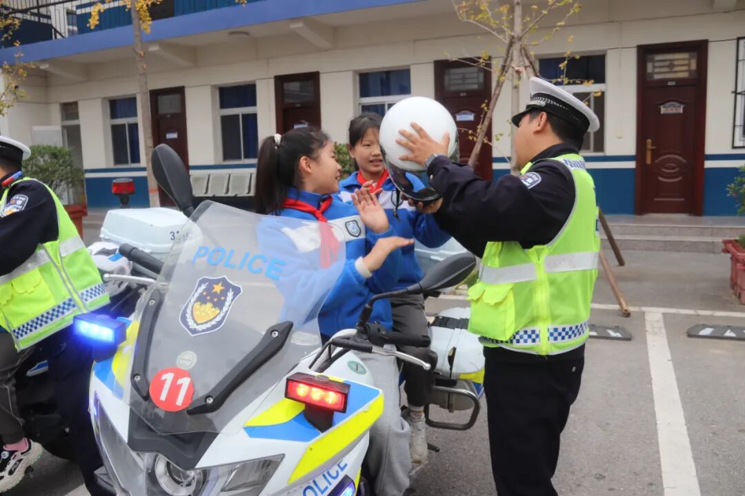 “警营开放日”当天,学生们走进分局交管大队,先后参观了交通指挥大厅、各种警用装备,在民警的鼓励和保护下,学生们排着队,兴奋地坐上了帅气的警用摩托车,亲身体验警用装备的 “威严”,引得阵阵赞叹。民警叮嘱同学们,日常出行要严守交规,尤其是告诉家长要佩戴好安全头盔,细节里藏着“大安全”。