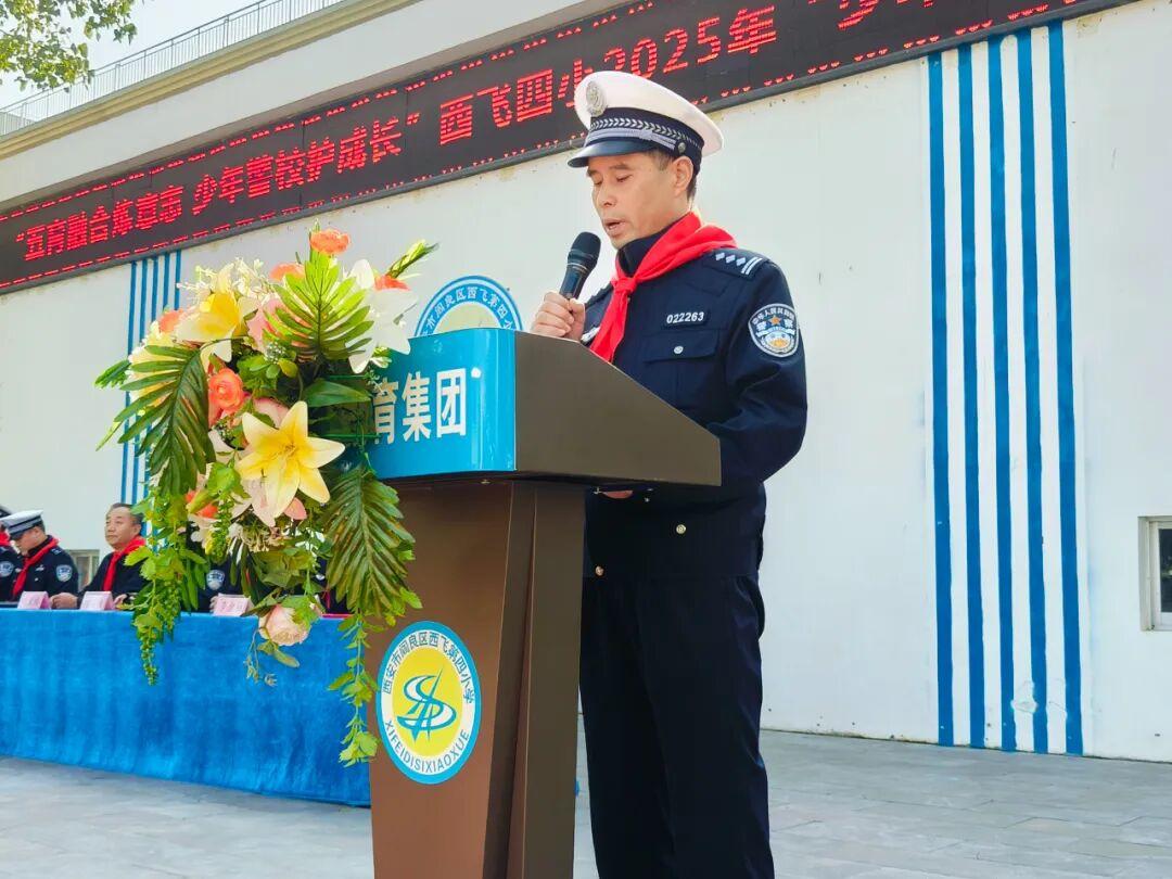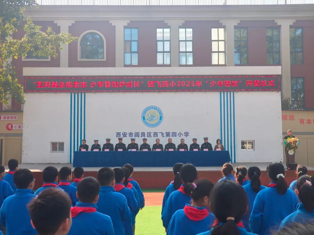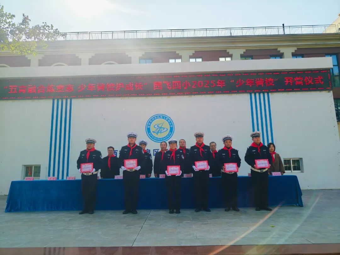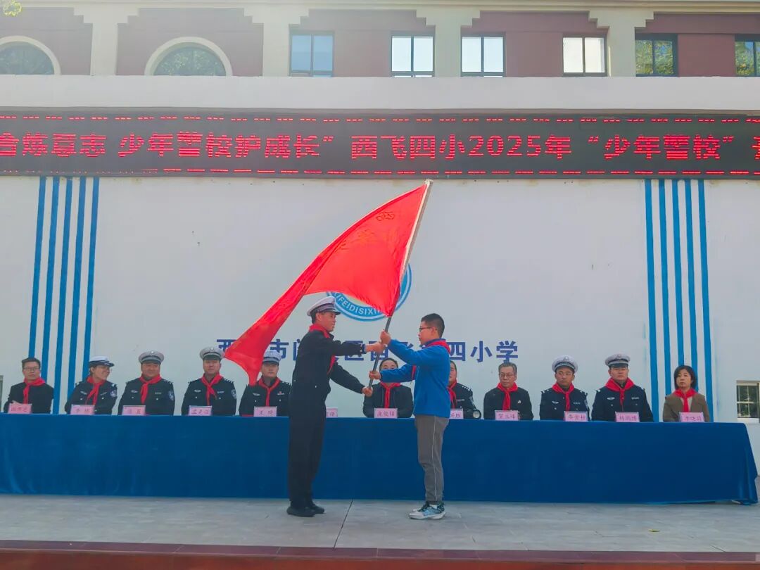 10月27日下午,公安阎良分局交管大队、西飞四小教育集团“五育融合炼意志 少年警校护成长”第23届“少年警校”开营。仪式上,交警大队大队长吴敬龙被聘为少年警校校长,教导员惠建锋、副大队长陈晨被聘为副校长,王琦、李棉等六名交警被聘为少年警校“校外辅导员”。西飞四小学生代表给与会的学校领导、交警佩戴了鲜艳的红领巾。