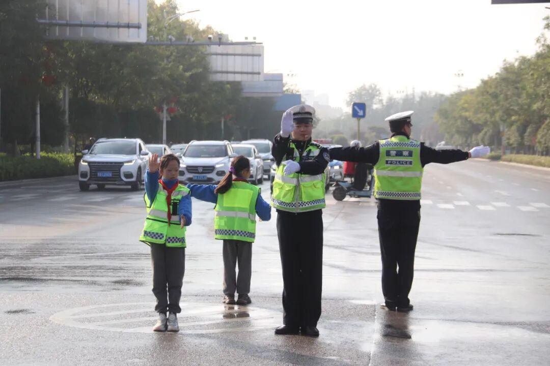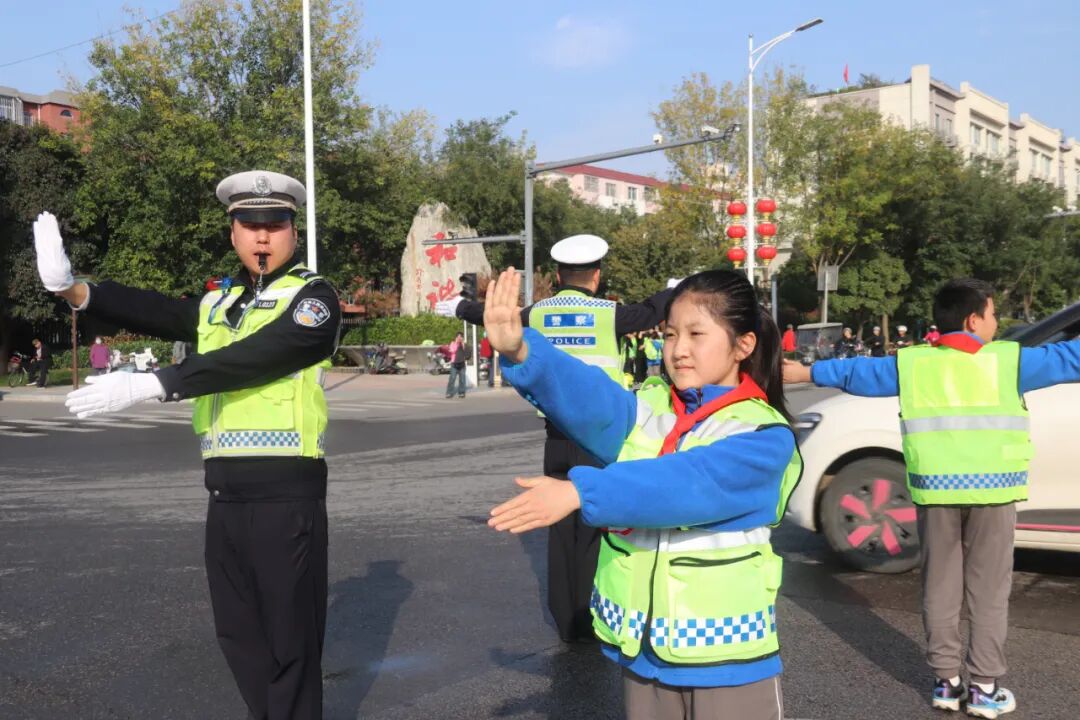 结业典礼上,五个班级的会操表演将活动推向高潮。学生们身着统一服装,动作整齐划一,标准的交通指挥手势赢得阵阵掌声。随后,20名"小交警"在民警指导和保护下,到人民路西航院十字开展交通手势指挥上岗实践活动。