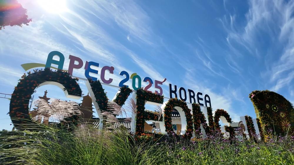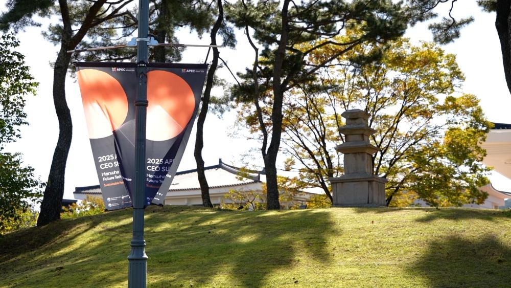 时值亚太经合组织第三十二次领导人非正式会议,印有APEC标识的条幅在庆州随处可见。