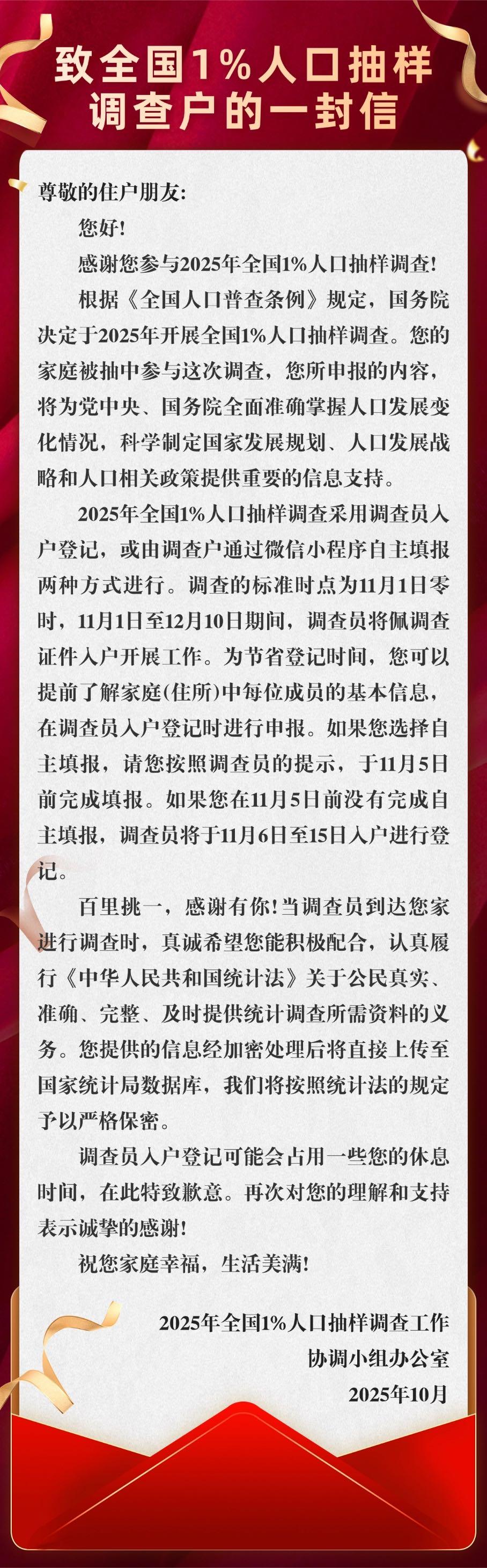 三秦都市报-三秦网讯(记者 余明)陕西省全国1%人口抽样调查今日(2025年11月1日零时)正式启动入户登记,现场登记工作时间为2025年11月1日至15日。