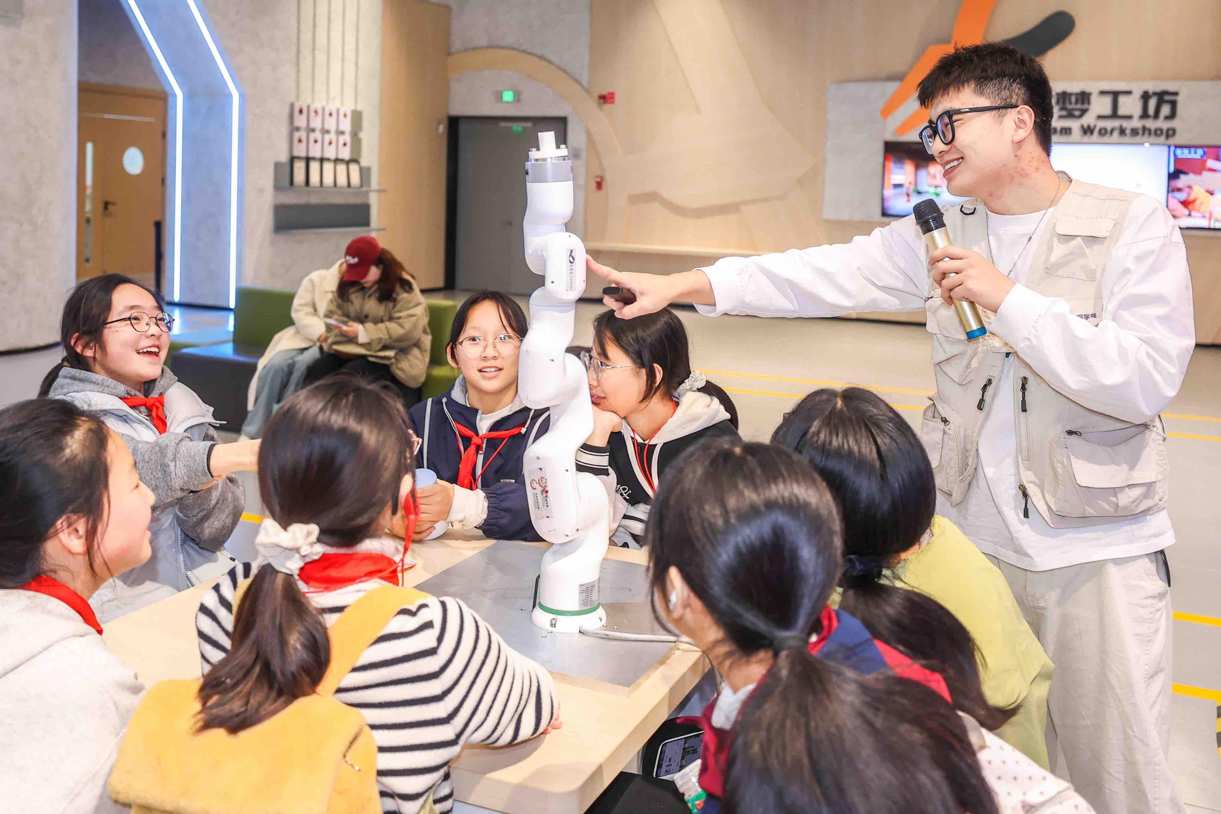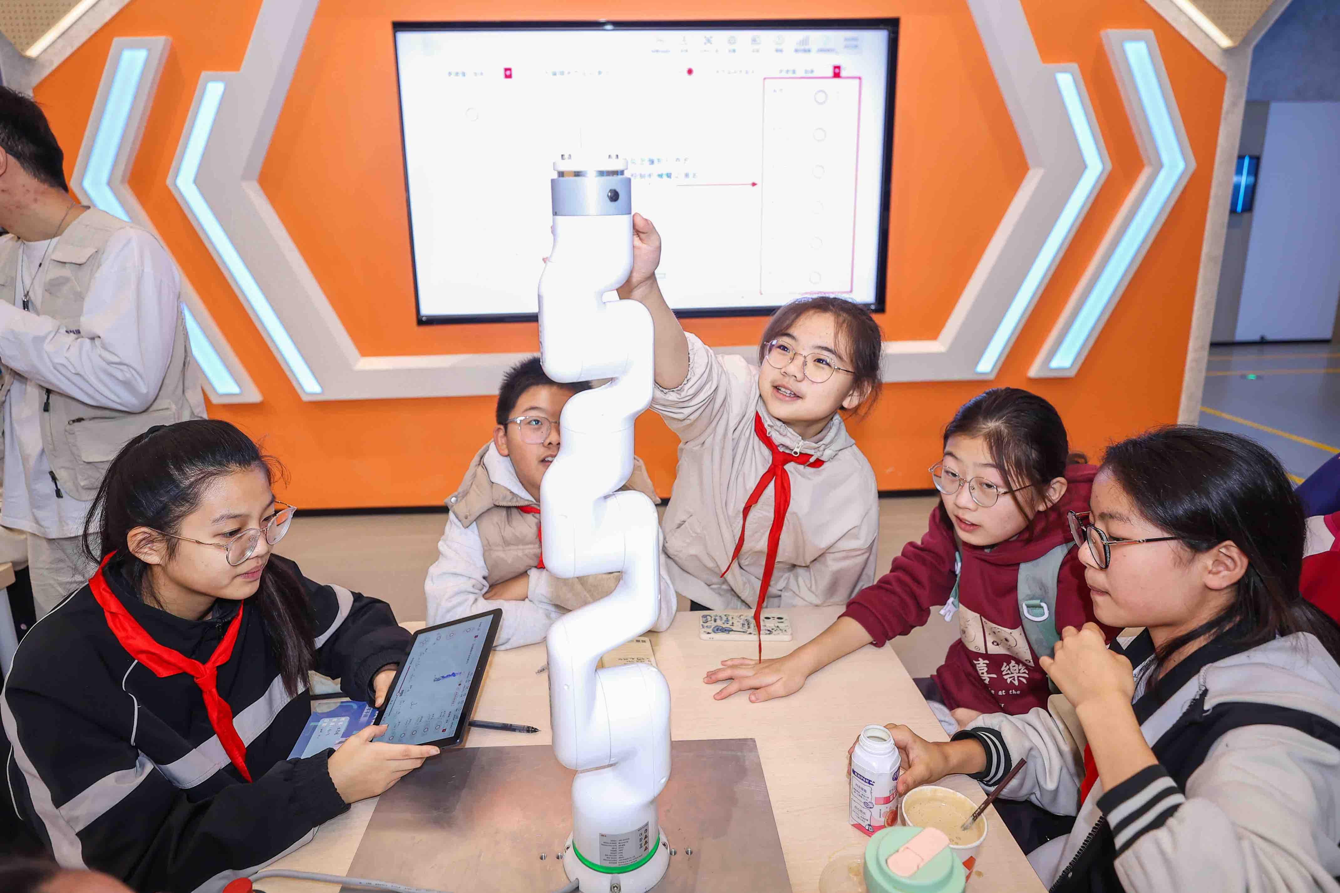 尤为引人注目的是未来科探学院特别推出的“工业机器人工程师”主题课程。学生们不仅亲眼见证了前沿科技展品的魅力,更在专业老师的指导下,亲手参与了工业机器人的控制与应用。通过编写程序、控制机器人完成写字、绘画和跳舞等创意实践,学生们深刻感受到了机器人技术的神奇与乐趣。这种身临其境的体验方式,让学生们对科学产生了全新的兴趣,也锻炼了他们的动手能力和实践能力。
