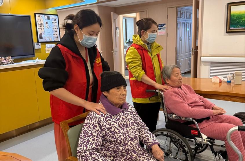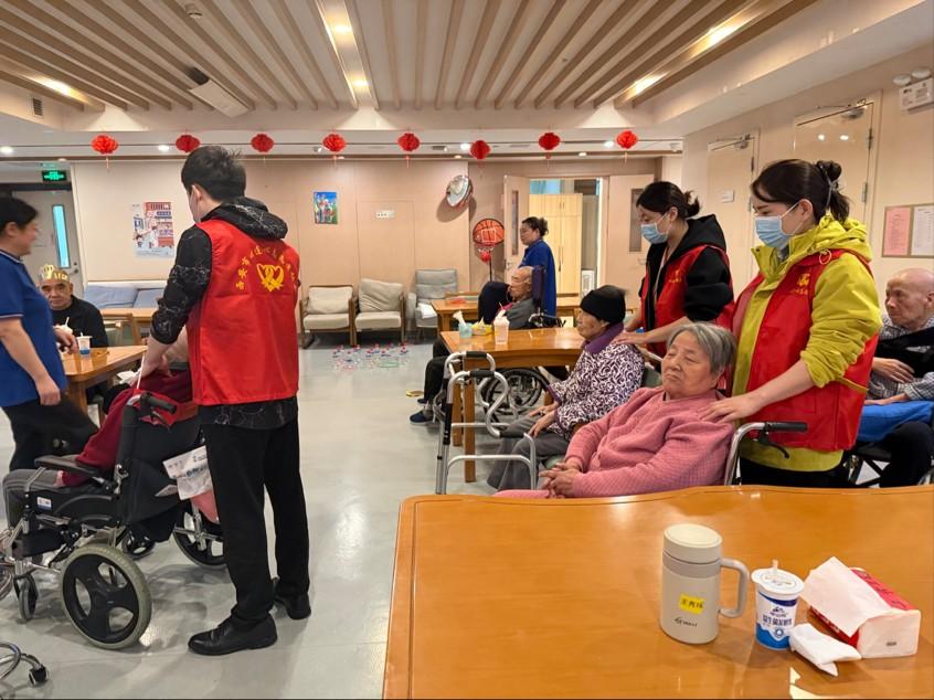 志愿者们化身“健康帮手”,耐心为老人们肩颈推拿、修剪趾甲,手法轻柔地疏通经络、放松肌肉,缓解老人们日常的身体酸痛。同时又做起“倾听伙伴”,围坐在老人身边,听他们讲述过往岁月里的故事,聊当下生活中的琐事,时而点头回应,时而轻声慰藉,阵阵笑声与暖心话语填满了养老中心的每个角落。
