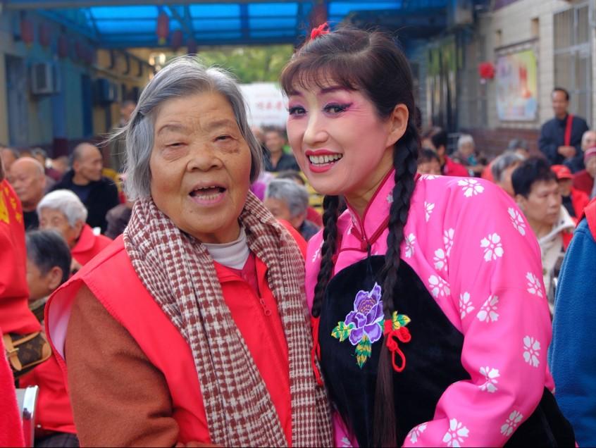 活动现场,一场兼具文化韵味与情感温度的视听盛宴徐徐展开。志愿者武素嫚的《我们的中国梦》《我爱你中国》红歌演唱,以激昂旋律点燃现场氛围;魔术表演的奇幻变幻,引得老人们频频惊呼、掌声不断;张琼的眉胡《梁秋燕》选段、英子的秦腔《诸葛亮撑船》、平为福的眉胡《银灯结彩》,地道唱腔演绎传统经典,让戏迷老人们直呼“听得过瘾、找回了年轻时的味道”;王济平与杨璐携手带来的诗朗诵《诗意中国》,以深情语调传递家国情怀,让现场沉浸在温润的文化氛围中。更动人的是,在志愿者的邀请下,老人们主动登台合唱《秋收》《最美的歌唱给妈妈》,公寓员工也加入其中,以舞蹈传递感恩之心。