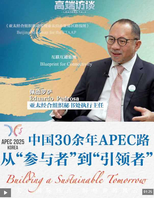 近日,亚太经合组织秘书处执行主任佩德罗萨接受总台《高端访谈》栏目专访。在问及如何评价这些年中国在亚太经合组织所发挥的作用时,佩德罗萨梳理了中国30余年来的APEC之路:从“参与者”到“引领者”!