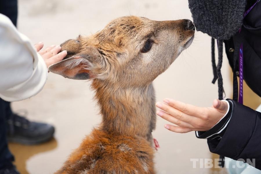 图为养殖场内的网红小鹿“次仁” 摄影:张艺彤