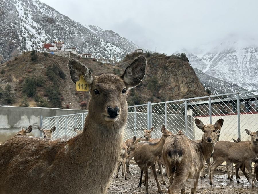 车辆经过数小时的跋涉,沿着土石山路一路颠簸,我们终于抵达海拔4000米的西藏第一家规模化高原生态养鹿基地:工布江达县娘蒲乡梅花鹿养殖基地。皑皑白雪中,一群毛色华美、体态优雅的梅花鹿正悠闲踱步,与远方的雪山、近处的牧舍构成一幅动人的生态画卷。