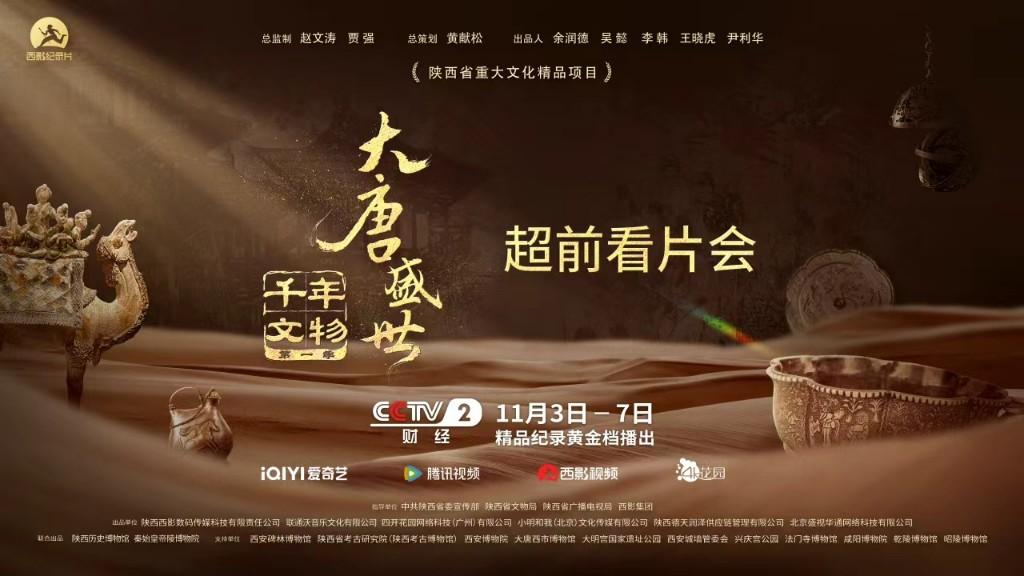 三秦都市报-三秦网讯(记者 夏明勤)10月30日、31日,大型8K历史文物纪录片《千年文物》第一季“大唐盛世”先后在西安、北京两地举行超前看片会。该片由西影视频、4K花园等单位联合出品,作为陕西省重大文化精品项目,主创团队耗时三年精心打磨,将于11月3日登陆CCTV-2精品纪录黄金档,11月5日在爱奇艺、腾讯视频等平台同步上线,为观众开启一场穿越千年的盛唐文化之旅。