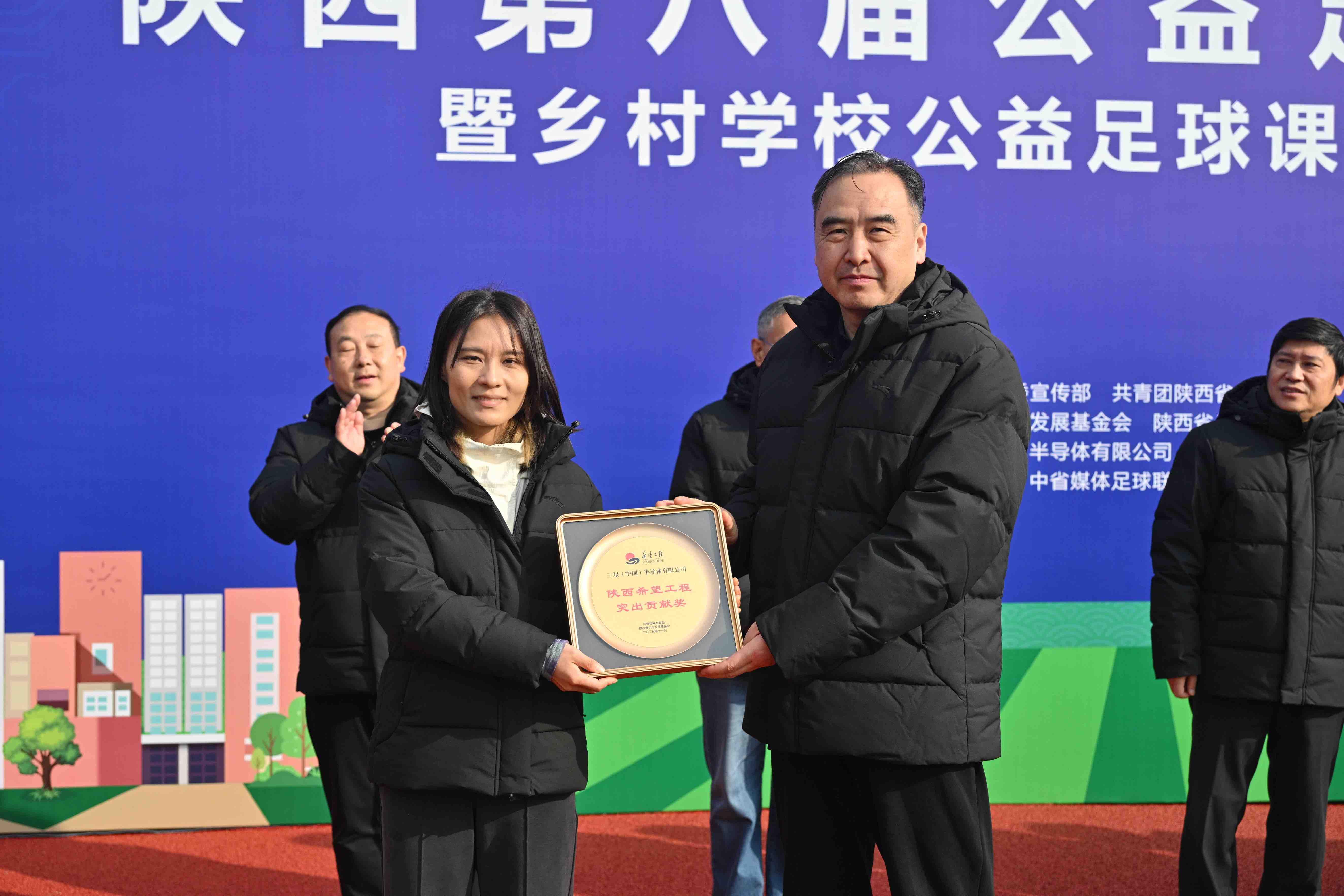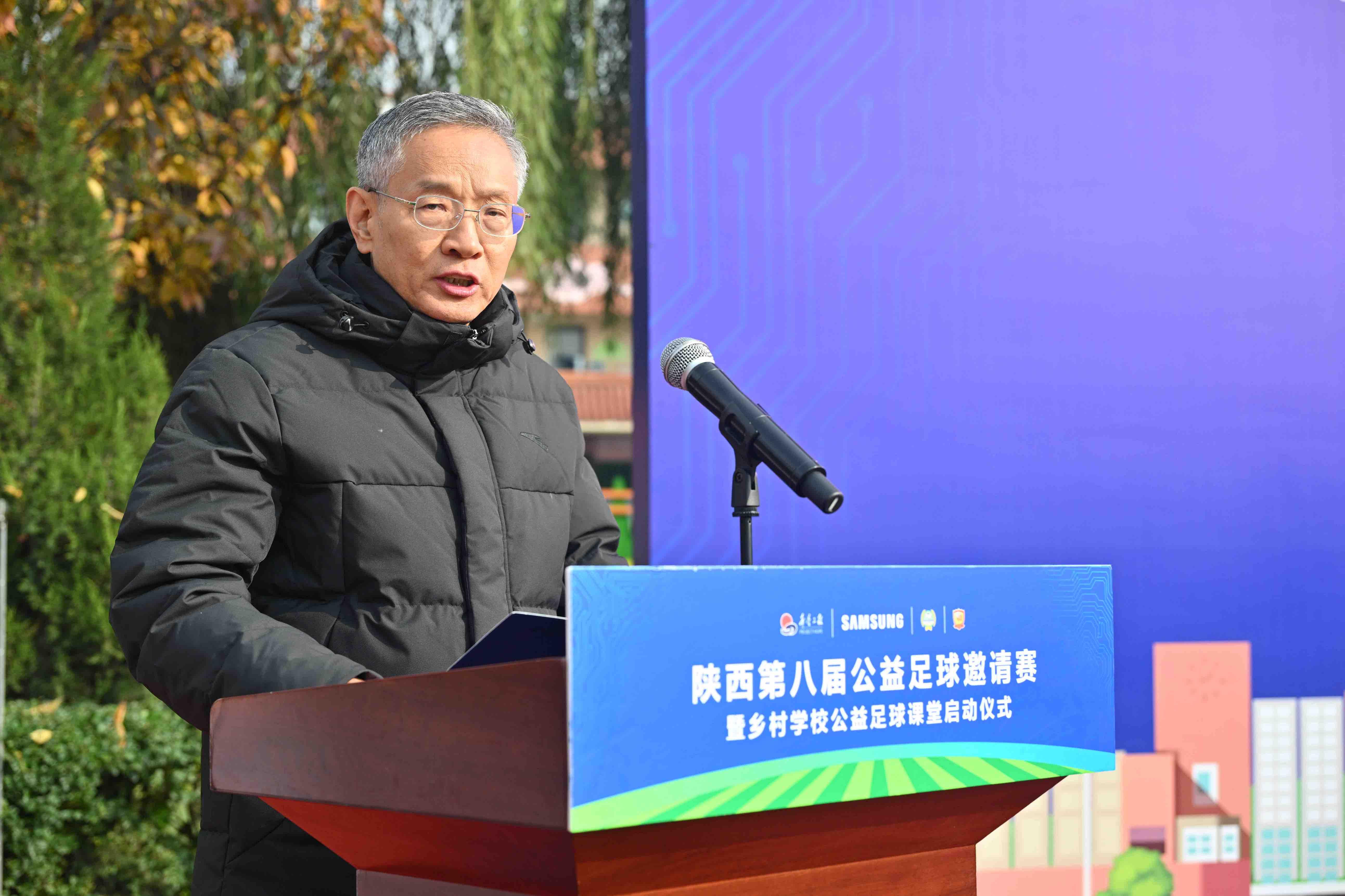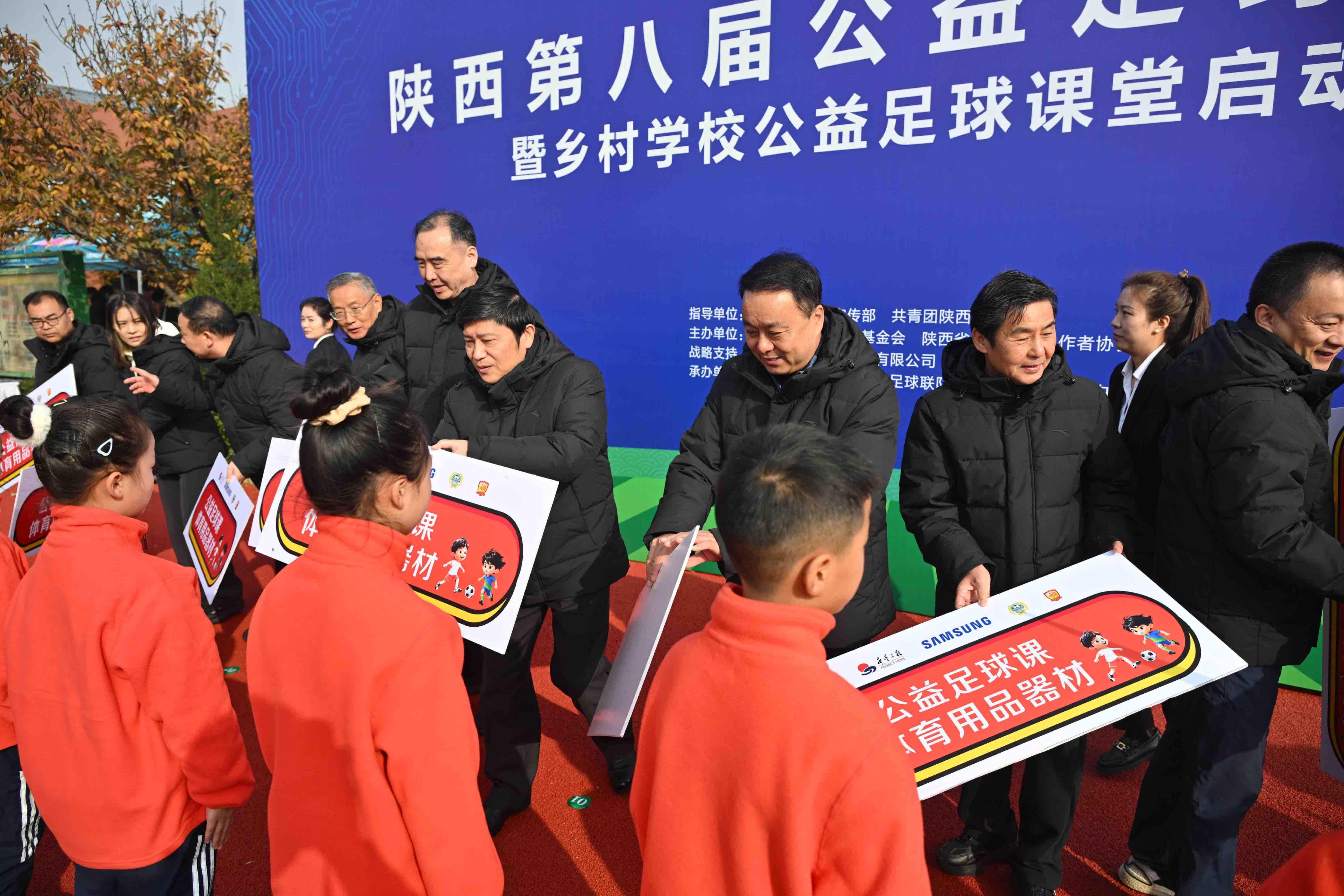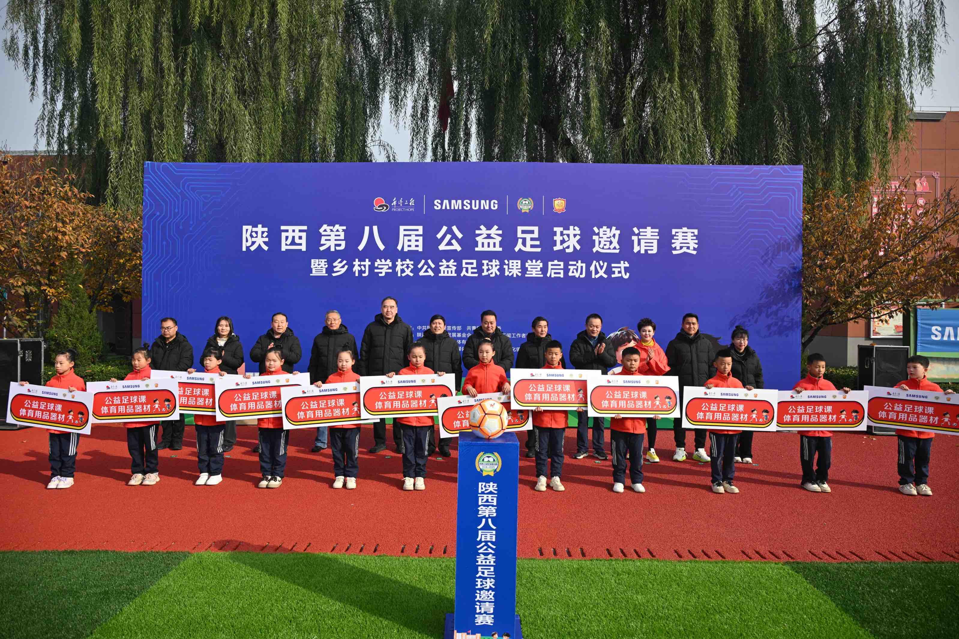 校园是足球梦想的摇篮,乡村少年更需运动的阳光。启动仪式上,本次赛事活动的战略支持单位三星(中国)半导体有限公司,向全省15所乡村学校进行了公益捐赠。公益足球课将搭建起资源互通的桥梁,将更多优质体育资源、专业指导力量引入乡村校园,包括乡村学校公益足球课堂形象大使王尔、西安体育学院足球专业教师王莎莎等,将带领专业足球教练前往乡村校园,带给孩子们专业的足球课程,让孩子们体会足球运动快乐。