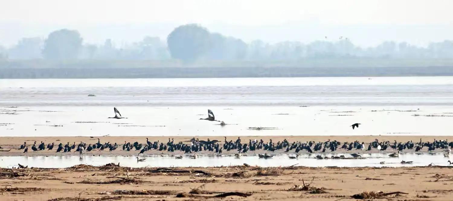三秦都市报-秦闻讯(李世居 赵正本 记者 代泽均)11月1日,在陕西黄河湿地省级自然保护区大荔段,首批迁徙飞临的灰鹤、白琵鹭、反嘴鹬、大白鹭燕鸥等候鸟的“先头部队”到达大荔县保护区。