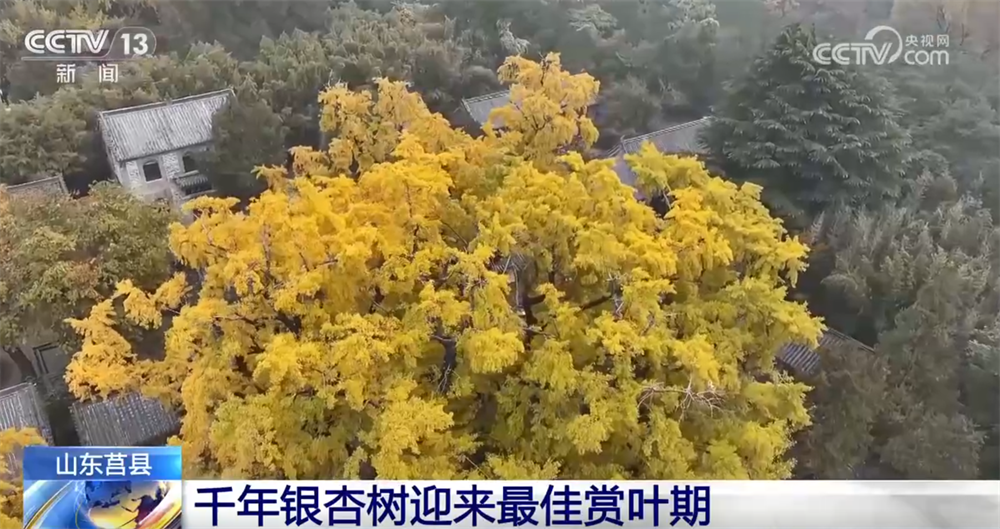 在山东莒县浮来山,一棵拥有树龄近四千年的大银杏树迎来了一年中最美的时刻。金黄色的银杏叶挂满枝头,吸引了不少游客前来观赏打卡。