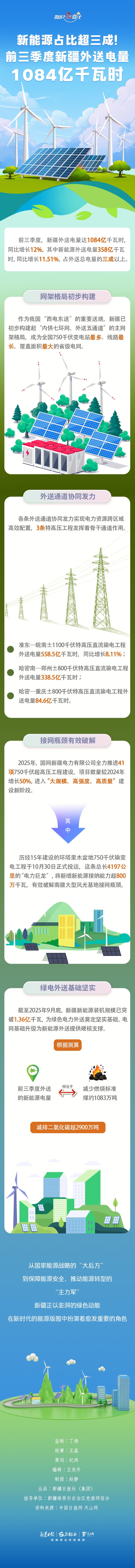 前三季度,新疆外送电量达1084亿千瓦时,同比增长12%。这一优异成绩是如何取得的?新能源表现如何? 今天的《数说“新”变化》一起来看看。