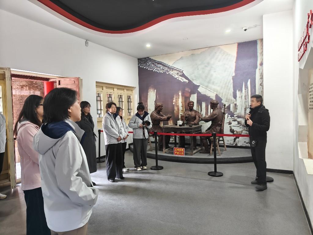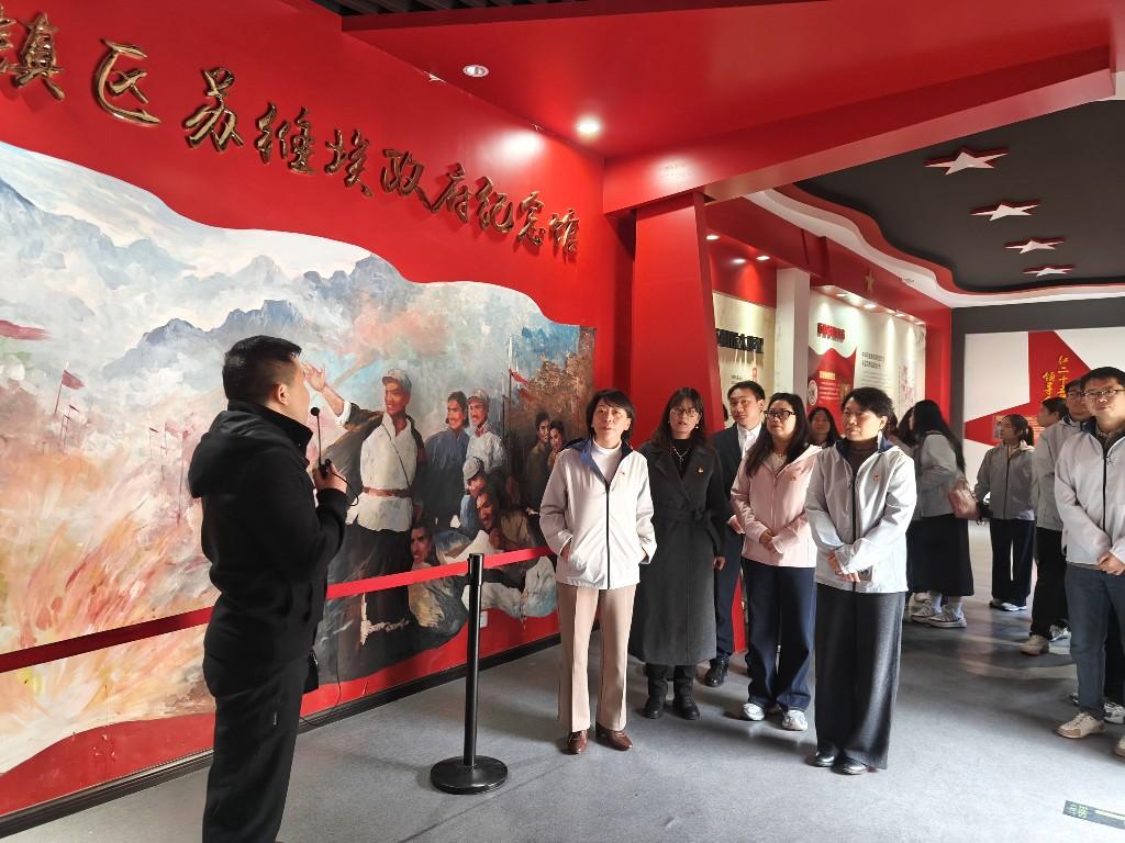 走进鄂豫陕苏维埃政府葛牌镇纪念馆,青砖苍瓦的建筑静静诉说着峥嵘岁月。在讲解员的引导下,党员教师们依次参观三个展厅:第一展厅通过历史图片、文献资料,系统梳理了红二十五军浴血奋战、创建陕甘边区第一个红色政权的艰苦历程;第二展厅以场景复原、实物陈列等形式,生动再现了苏维埃政府领导群众打土豪、分田地,开展武装斗争与经济文化建设的革命实践;第三展厅聚焦吴焕先、程子华等革命先辈的生平事迹,其忠诚于党、无畏牺牲的崇高精神深深震撼着在场每一个人。大家驻足凝视朴素的革命文物,认真聆听感人的历史故事,仿佛穿越时空置身烽火战场,真切体会到革命胜利的来之不易与革命先辈的坚定信仰。