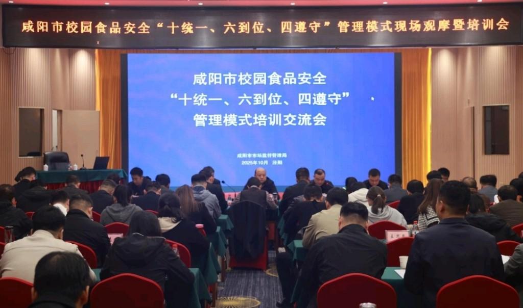 三秦都市报-三秦网讯(乔义平)为扎实推进校园食品安全“十统一、六到位、四遵守”管理模式落实,10月30日至31日,咸阳市市场监管局在泾阳县举办现场观摩和培训交流活动,市市场监管局、泾阳县政府分管领导参加活动。