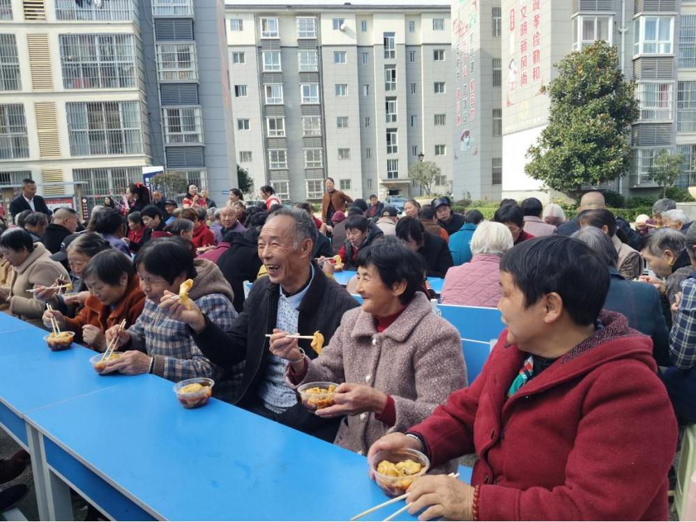 与此同时,温情满满的饺子宴也在同步进行。青年志愿者与银龄志愿者携手包出的热腾腾饺子陆续出锅,老人们围坐一堂,品尝美味,脸上洋溢着幸福与满足。针对行动不便的老人,社区工作人员和志愿者还上门送饺子,让他们足不出户也能感受到节日的关怀与温暖。