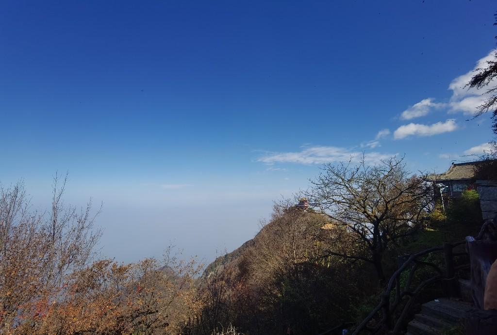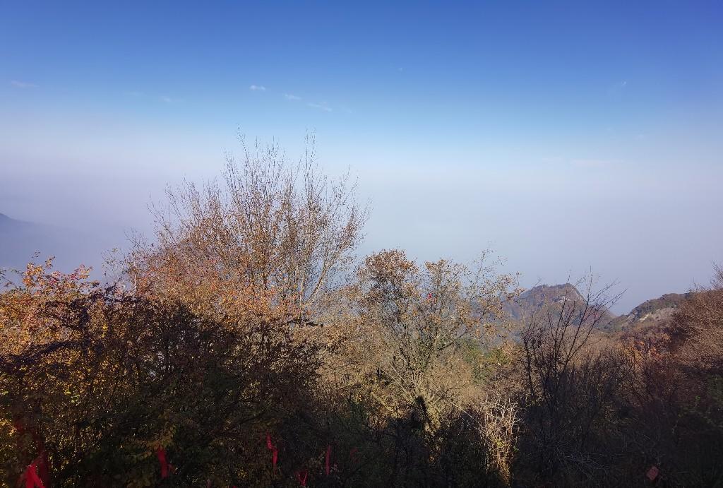 入秋以来,南五台景区内海拔差异带来的“垂直秋景”逐渐显现。在季风与温差的作用下,植被色彩层次极为丰富,为山峦挥洒上赤金交织的斑斓画卷。山间常伴有辐射雾形成的云海,缭绕于五彩林海与佛教殿宇之间,共同构成了“红叶云海”的经典地理意象。