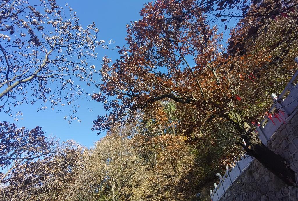 从山脚的郁郁葱葱到山腰的色彩斑斓,再到山顶的红叶满坡,不同海拔呈现出不同的秋日景致。游客在登山途中可沉浸式感受“一步一景、步移景异”的秋日浪漫。无论是沿途徒步赏叶、登高远眺全景,还是在古台遗址旁静坐观秋,都能感受到其不同韵味。
