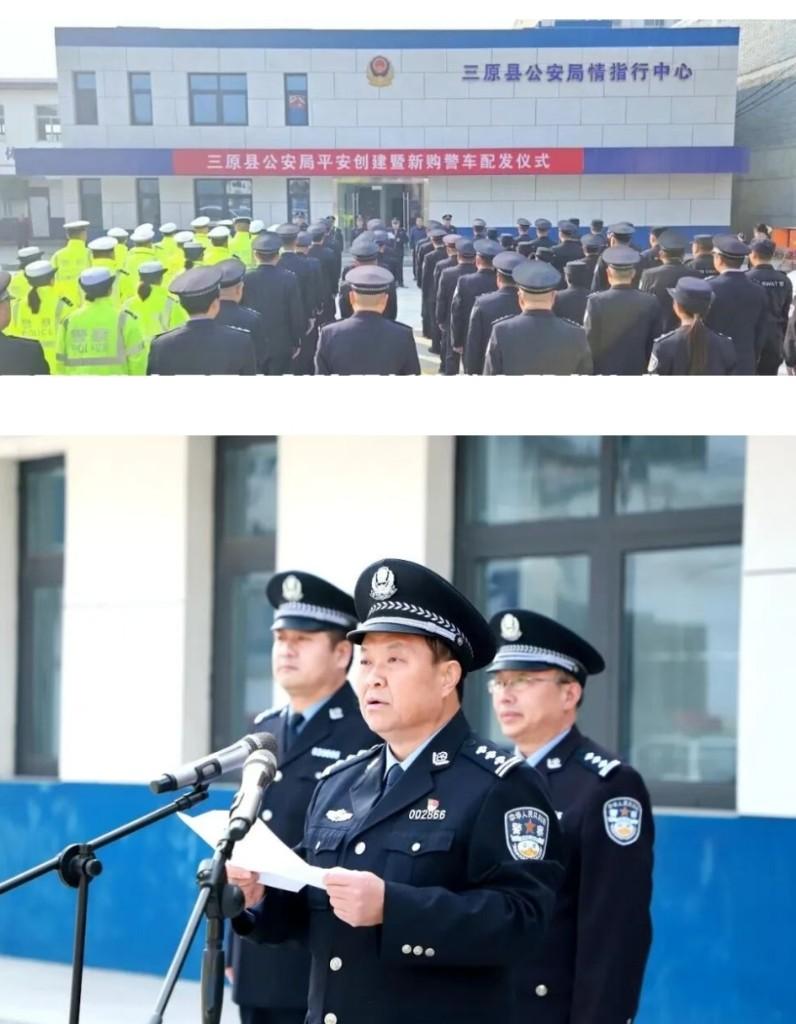 三秦都市报-三秦网讯(贾于卜)为进一步夯实基层警务基础,全面提升动态防控和应急处突能力,深入推进“平安三原”建设宣传月工作,近日,咸阳市三原县公安局举行平安创建暨新购警用车辆配发仪式。三原县副县长、县公安局党委书记、局长张正君出席仪式,县局领导班子成员、各所队室负责同志及民警代表参加此次活动。