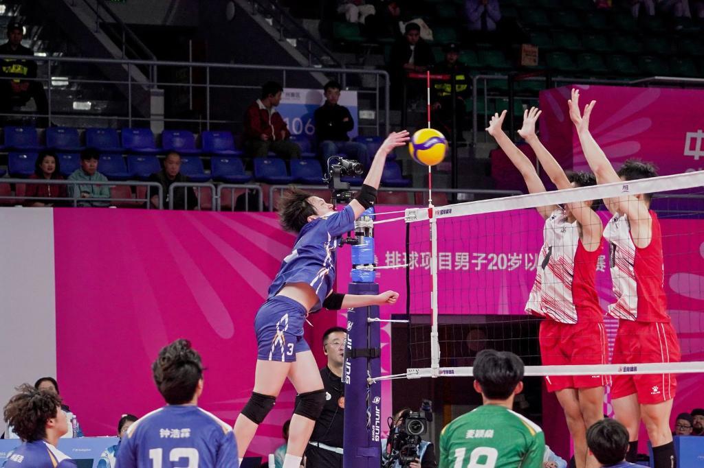 新华社广州11月4日电(记者李琳海)4日,第十五届全国运动会排球项目(男子20岁以下组)比赛迎来第四个比赛日。当日下午在广州体育学院亚运篮球馆举行的B组小组赛中,澳门队以0:3负于河北队。