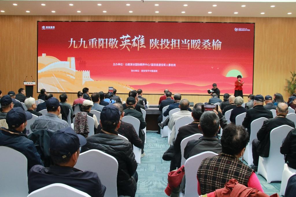 三秦都市报-三秦网讯(记者 刘姝)11月4日,一场以“九九重阳敬英雄 陕投担当暖桑榆”为主题的关爱退役军人活动,在西安蓝田县白鹿溪谷国际颐养中心举办。本次活动由白鹿溪谷国际颐养中心与西安市蓝田县退役军人事务局联合主办,西安和平中医医院协办,吸引了数百位特殊“客人”——退役退伍军人,他们齐聚一堂,喜迎重阳、共忆峥嵘。