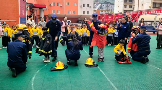 走进“火焰蓝”,致敬最美逆行者。该园将“消防课堂”搬进县消防救援大队,组织大班幼儿开展“揭秘火焰蓝”社会实践活动。孩子们通过零距离探秘消防车辆与随车消防器材,观看消防员迅捷如风的着装演示,并亲自登上消防车,体验感悟消防员防火救援的神圣职责。在热烈的互动答疑中,孩子们不仅了解了消防救援知识,更对消防救援职业萌生了崇敬之情。