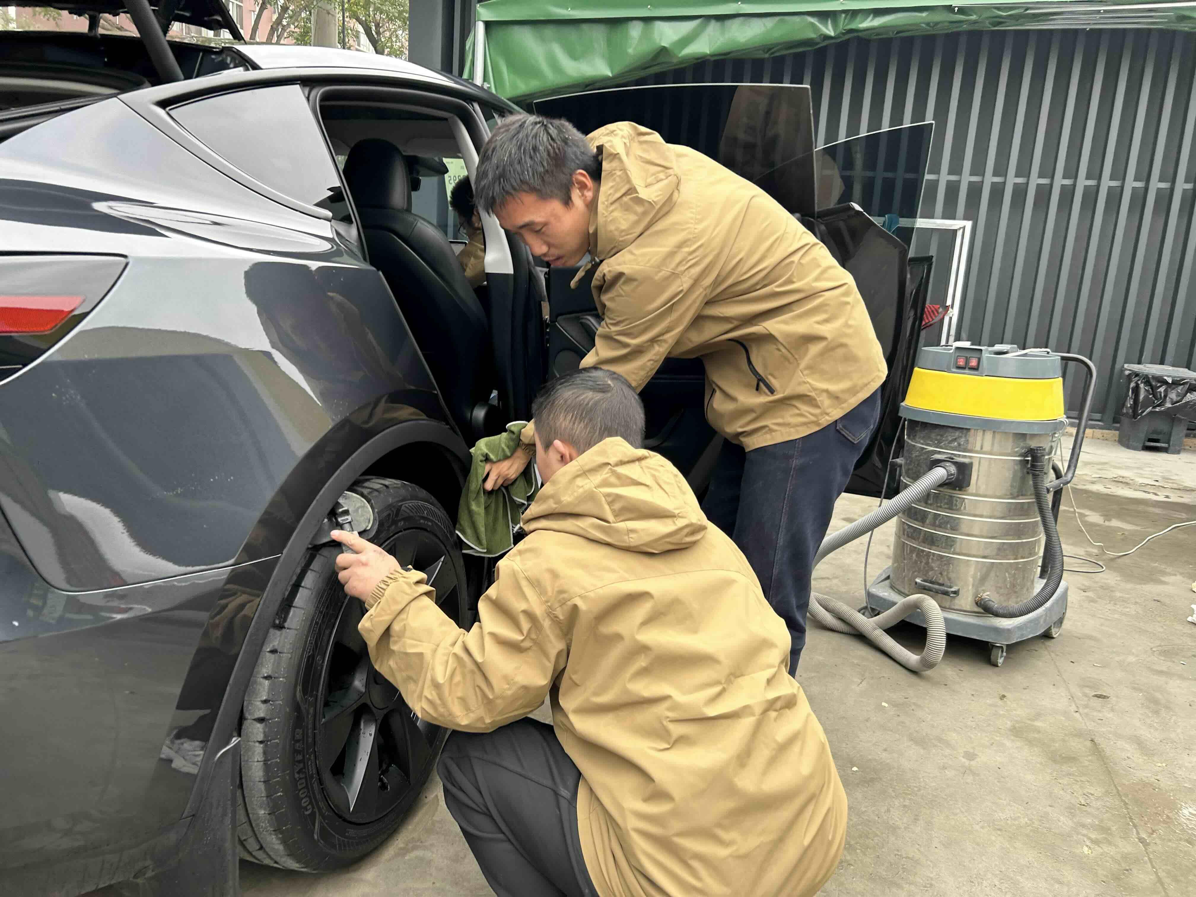 “把玻璃再擦一下,我们一起加油。”豪豪一边认真地擦车门一边给同伴说,看着儿子细心地擦拭着车门的每一处缝隙,豪豪的爸爸倪先生特别欣慰地点头,“孩子在这儿工作很开心,每个月有固定的工资,也给娃买了社保,还管午饭,娃很高兴,我们也很放心。”他说,现在每天下班豪豪都会告诉他自己今天擦了多少辆车,遇到什么新鲜事了,每次发了工资,都会请他大吃一顿……