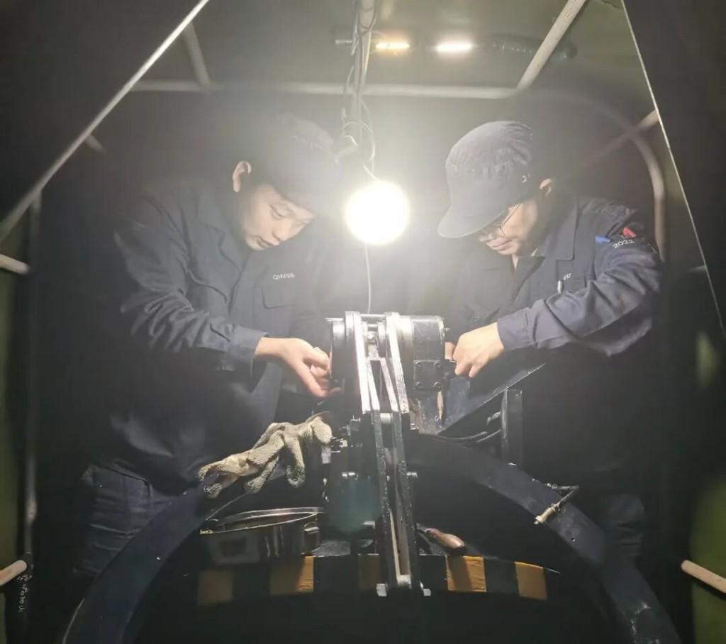 维修过程中,团队以“工匠精神”打磨每一道工序:王师傅专注核心部件打磨,确保制动精度;姜师傅细致清理润滑关键部位;冯班长统筹进度,紧固螺丝、焊接线束、检查传感器,不放过任何细节。