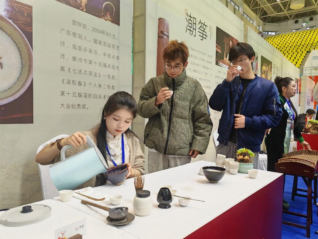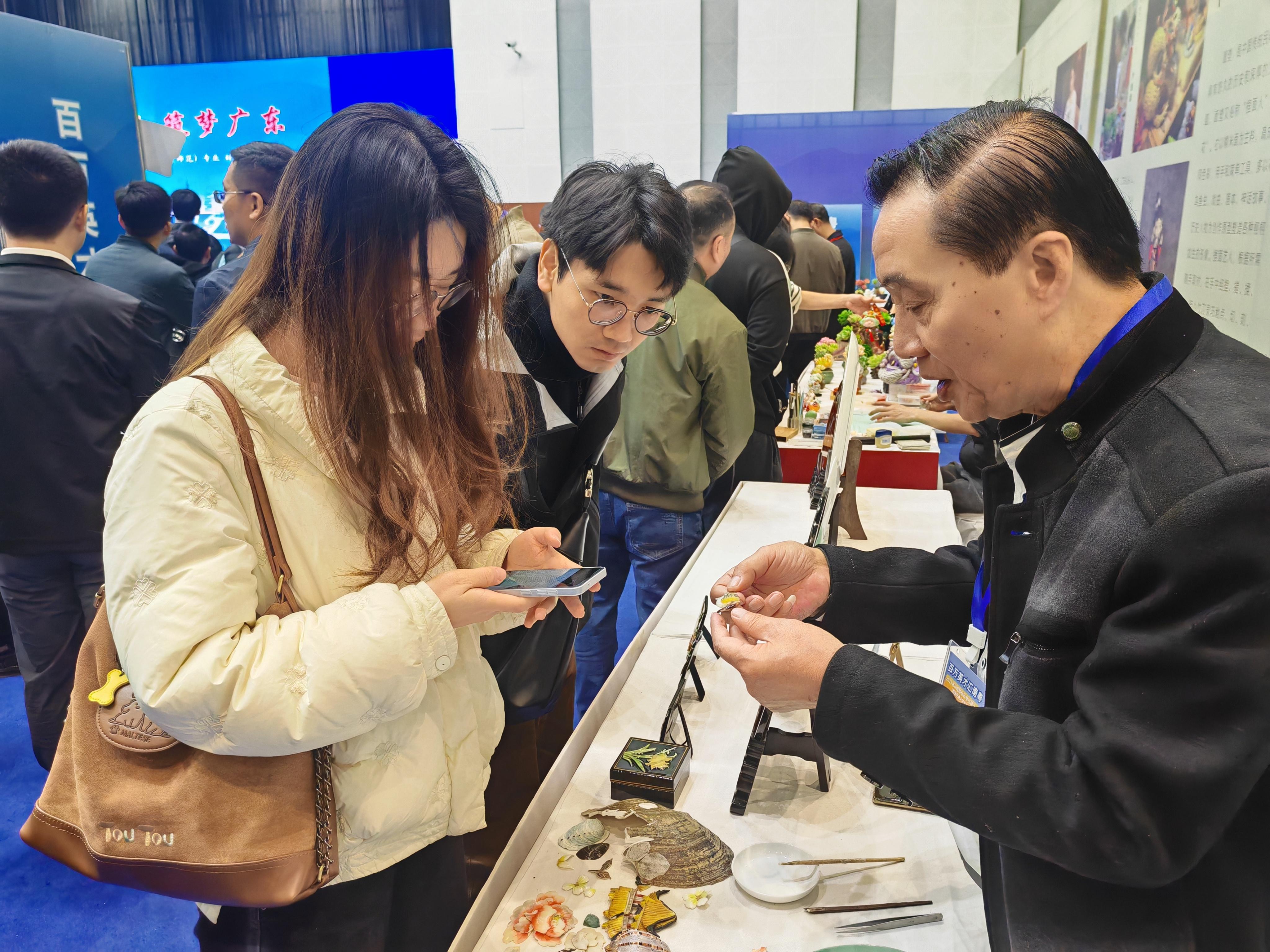 记者看到,招聘会现场设立了职业服务区,为求职者提供政策咨询、职业规划、职业形象(妆造)指导等服务。综合服务自助打印区、证照拍摄点也方便求职者打印相关资料。此外,现场的非遗体验区和潮汕美食品鉴区也吸引了许多求职者的目光,融合了兵马俑与醒狮形象的精美面塑、展现海洋文化的贝雕、香气四溢的猪肉脯和芝麻糖……各种“广东特色”让学子们在寻觅职业机遇的同时,体验到了浓郁的广东文化。