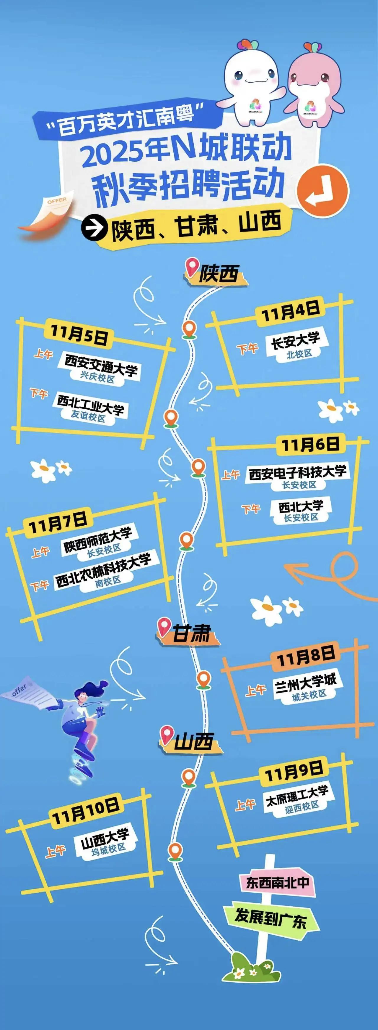 据悉,此次“百万英才汇南粤”2025年N城联动秋季招聘活动期间,主办方分别走进西安交通大学、西北工业大学、西北农林科技大学,西安电子科技大学、陕西师范大学、西北大学、长安大学,重点招聘电子信息、化工新材料、生物医药、人工智能、高端装备制造、半导体等领域人才。中国500强榜单头部企业、科技领军企业、链主企业、高新技术企业、专精特新企业等单位将为陕西高校学子提供3.8万个优质岗位。