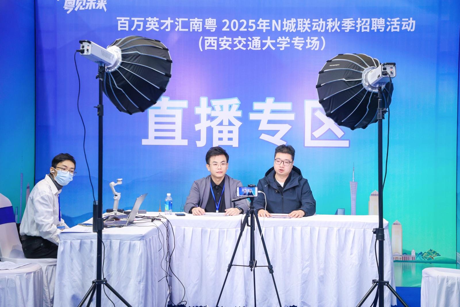 当天除了现场招聘外,“百万英才汇南粤”西安交通大学校专场同步开启直播带岗。主播带领线上观众“云逛招聘会”,逐一介绍重点企业岗位信息、广东引才政策与现场文化互动亮点,实时解答直播间内的疑问,打破地域限制,让无法到场的学子也能同步参与这场招聘盛会。西安交通大学校专场线上招聘会将持续至11月12日,求职者可登录“粤就业”小程序随时随地查看岗位、一键投递简历。