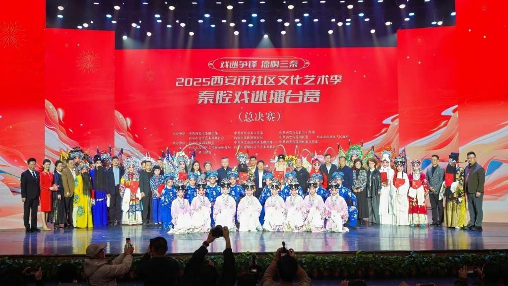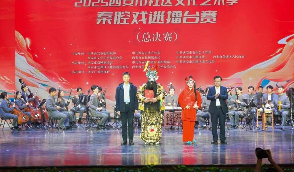 三秦都市报-三秦网讯(记者 夏明勤)秦韵激荡,戏迷梦燃。11月5日晚,由中共西安市委组织部、中共西安市委宣传部、中共西安市委社会工作部、西安市文学艺术界联合会、西安市文化和旅游局、中共西安市莲湖区委、西安市莲湖区人民政府主办的“戏迷争锋,擂响三秦”2025西安市社区文化艺术季——秦腔戏迷擂台赛总决赛,在西安人民剧院举行。现场近千名观众与线上直播观众共同领略“戏在民间”的巅峰较量,品味非遗秦腔的当代新声,见证一场历时六个月的百姓艺术盛会在高潮中圆满落幕。