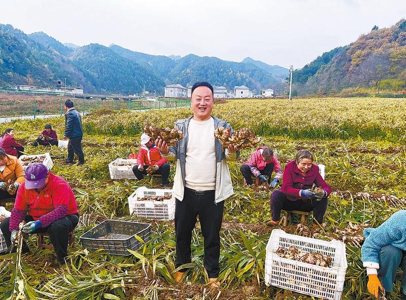 丰收的喜悦在田间流淌,也悄然滋润着乡亲们的生活。采收旺季,每天都有六七十名村民在这里忙碌。按照每人每天80元的工资标准,这片姜田成了大家增收的“聚宝盆”。“在家门口就能找到活干,既能照顾老小,又能增加收入,日子就像这姜一样,越品越有味!”正在忙碌的马小兰直起腰身,额角的汗珠在阳光下晶莹闪烁,脸上的笑容比秋阳还要灿烂。