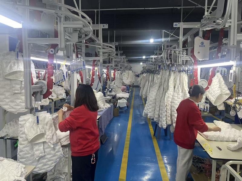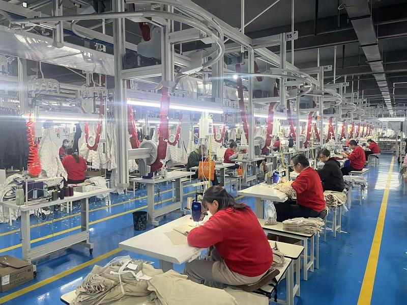 走进陕西欣达仕业服装科技公司宽敞明亮的5G全智能服装生产车间,工人师傅们正在现代化的流水生产线上作业。一排排做工考究、款式新颖的羽绒服正在通过吊式履带向着下一个工序“流动”。