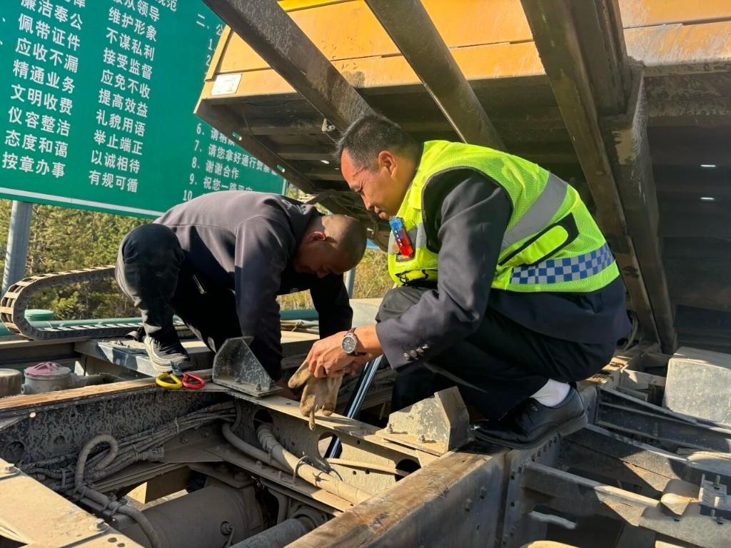 11月3日13时30分,杨桥畔收费站入口广场,一辆清障救援车突然熄火“罢工”。外勤人员高青云立即上前查看,并呼叫班长何广利协助。何广利迅速摆放锥形桶疏导后方车辆,高青云则快速排查故障,发现是气管绳断裂。他随即从便民服务箱中取出工具,仅用几分钟便帮司机更换完毕。临别时,还不忘叮嘱:“尽快去专业站点做全面检修。”司机紧握他的手,连连道谢。