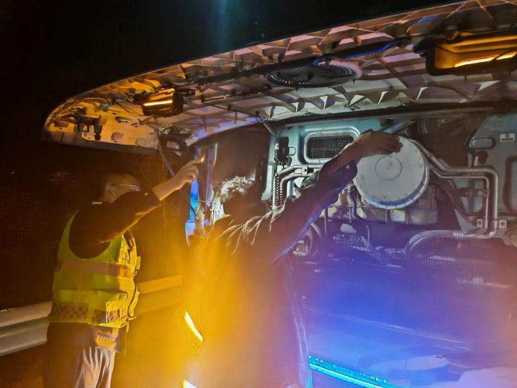 深夜的高速同样不缺守护。11月4日晚,绥德路产养护管理中心巡查员在例行巡逻中,发现应急车道上一辆货车开着双闪,司机站在车旁手足无措。经询问得知,车辆因冷却液不足导致发动机高温停机。巡查员一边安抚司机情绪,一边协助添加冷却液,反复尝试后成功启动车辆,并引导其安全驶入行车道,消除安全隐患。
