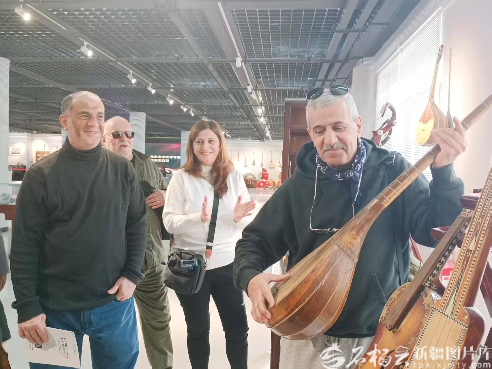 11月1日,参访团走进库车市热斯坦旅游休闲街区。居民捐赠的老物件与工匠打造的传统手工艺品相映成趣,击鼓巷的龟兹乐舞引得黎巴嫩大学教授塔玛拉·贝鲁情不自禁翩翩起舞。