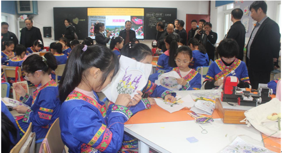 观摩高台小学的羌绣社团活动