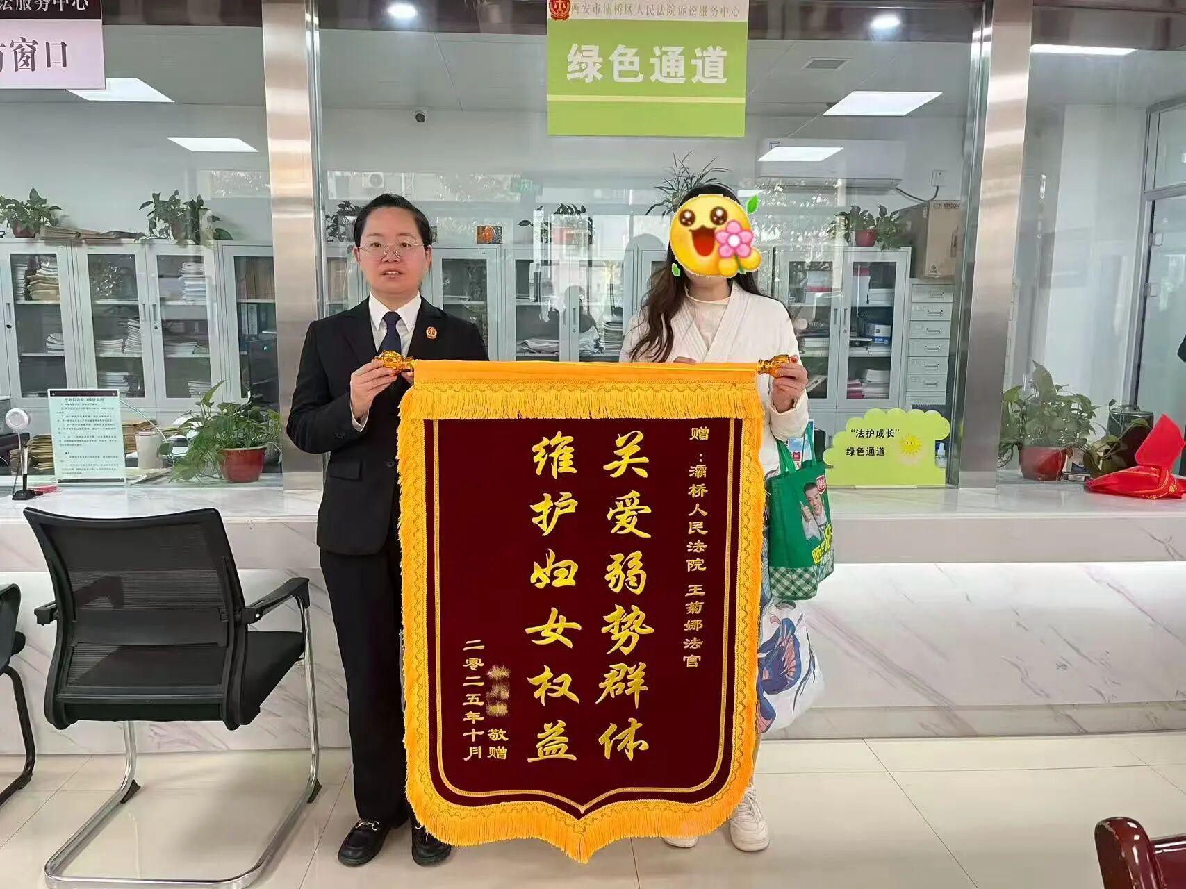 三秦都市报-三秦网讯(王菊娜 记者 文晨)近日,市民余女士专程来到西安市灞桥区人民法院,将一面印着“关爱弱势群体,维护妇女权益”的锦旗亲手送到立案庭王菊娜法官手中。这面锦旗背后,是法院借助人身保护令,为长期遭受家庭暴力的她,筑起了一道坚实可靠的安全屏障。